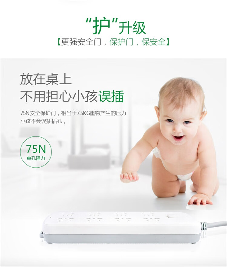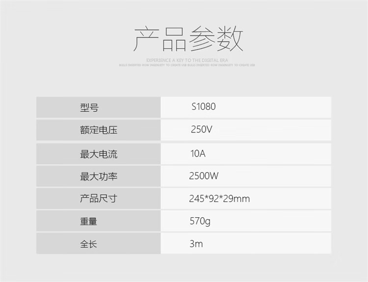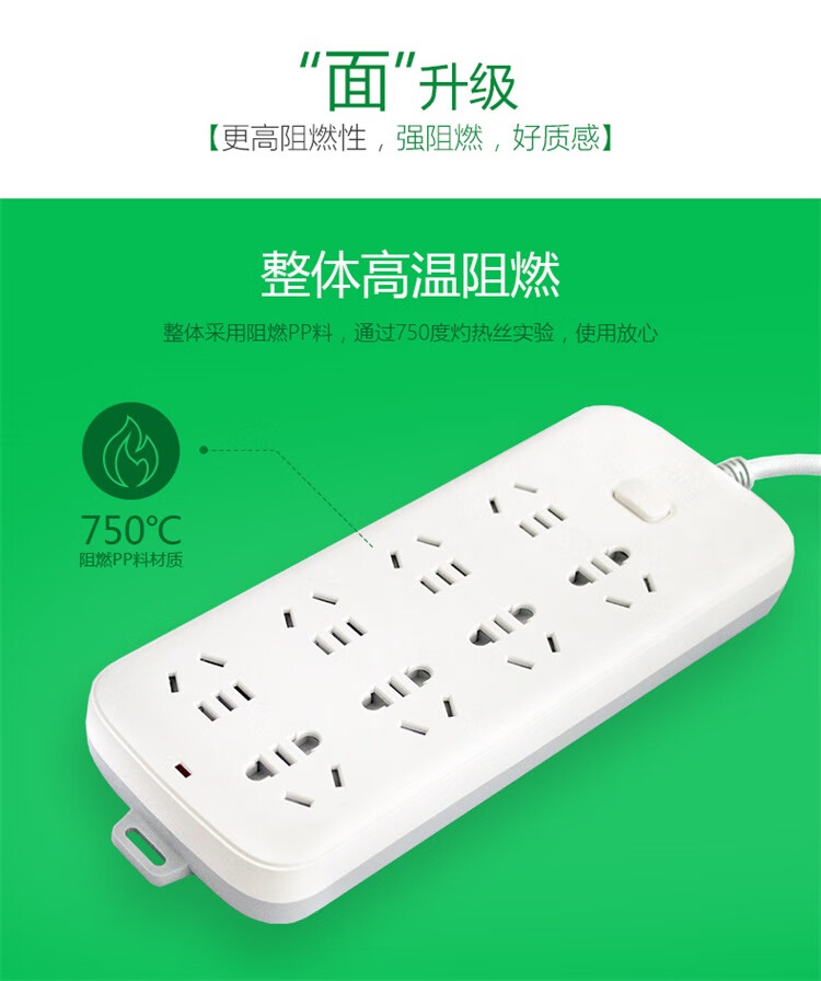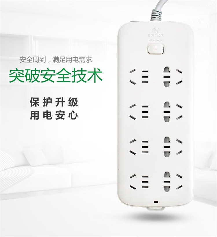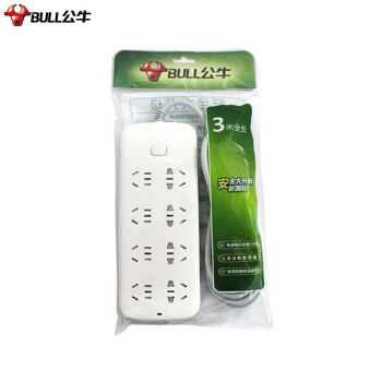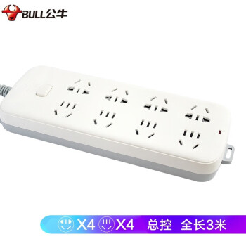 公牛(BULL) GN-S1080 插座 新國(guó)標(biāo)插座/插線板/插排/排插/接線板/拖線板 8位總控全長(zhǎng) 3米
