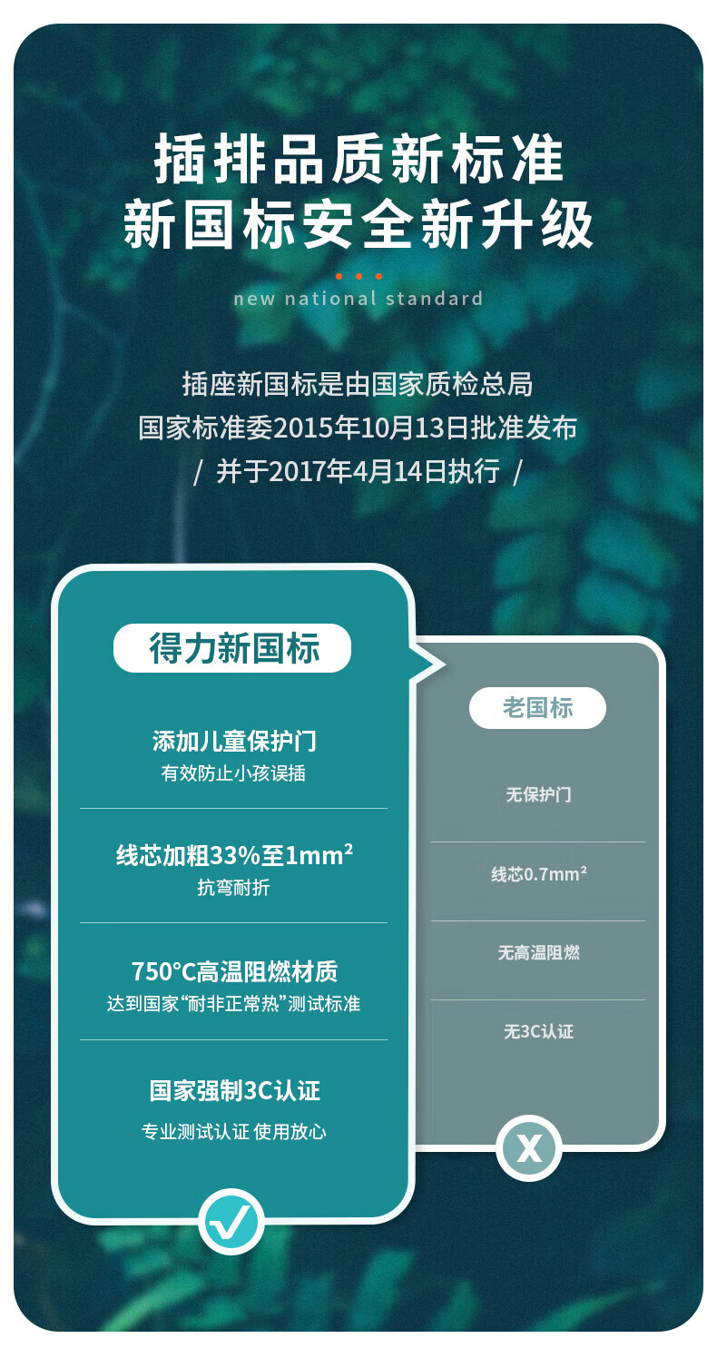 得力(deli) GN-109K 插座 多功能插排/插線板/拖線板/接線板/電插板/插座板 6位3米