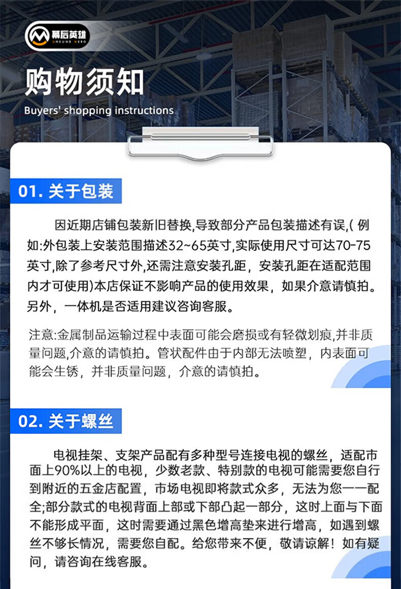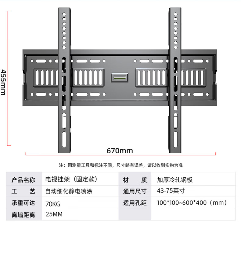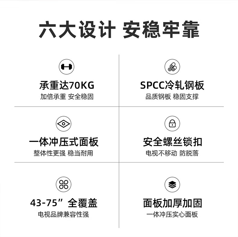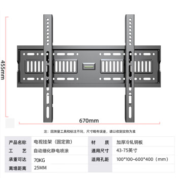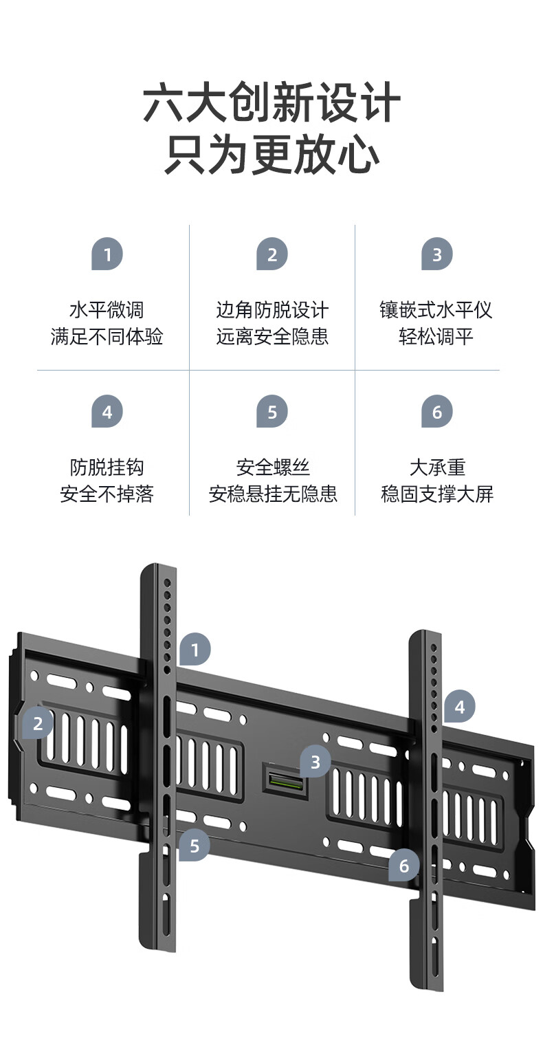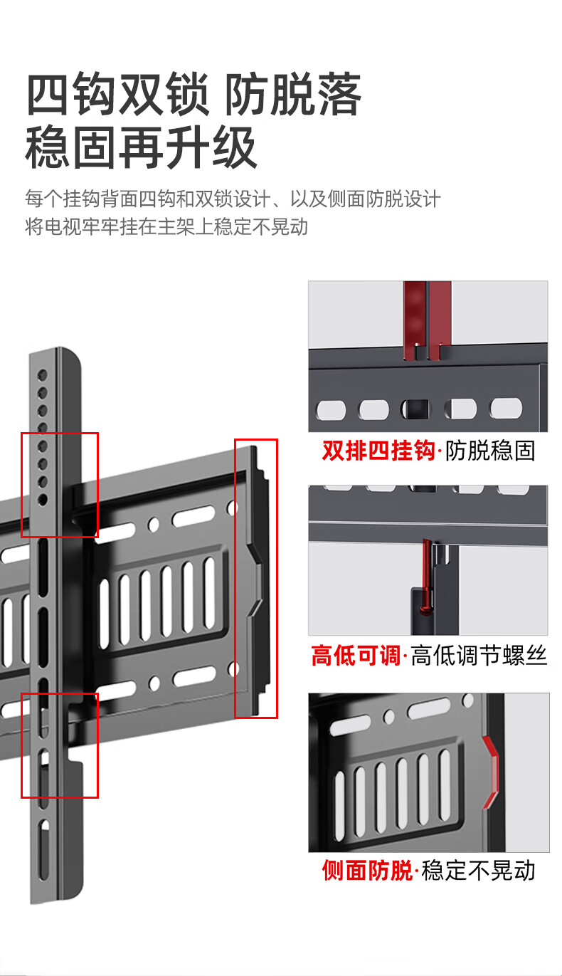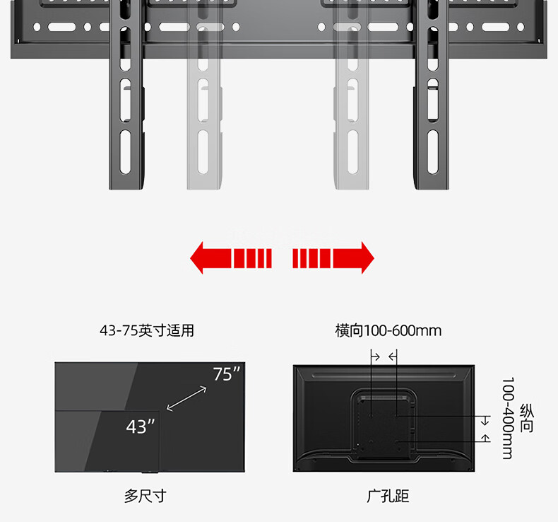 幕后英雄 音視頻配件 W789加厚43-75英寸通用電視機掛架液晶電視支架小米海信創(chuàng)維康佳TCL長虹夏普華為液晶電視壁掛架固定款