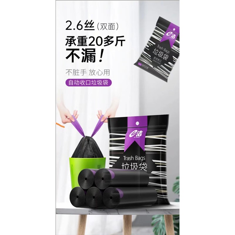 e潔 清潔工具(2卷/包)抽繩垃圾袋(10升)