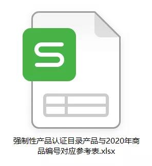 點擊文末“閱讀原文”,下載《強制性產品認證目錄產品與2020年商品編號對應參考表》Excel版。