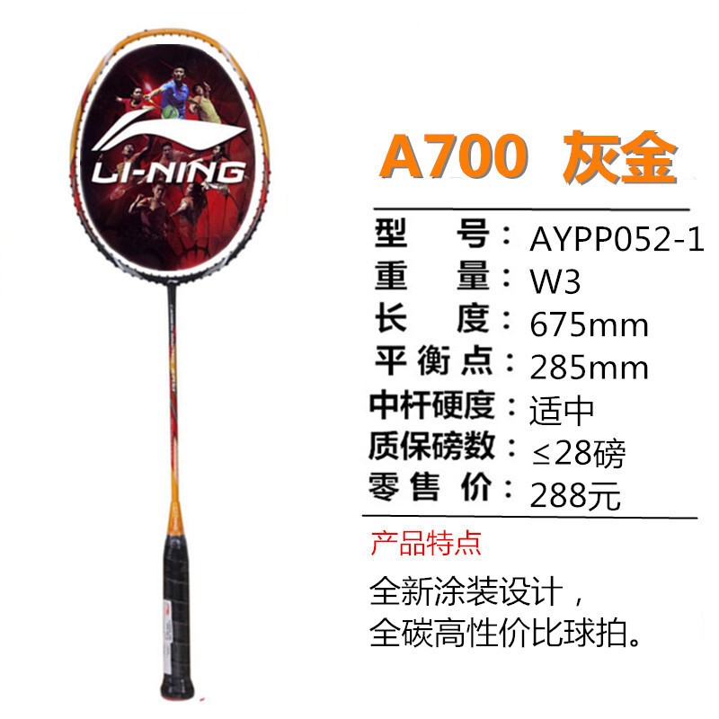 李寧男女攻防兼?zhèn)淙腴T級全碳素初學(xué)耐打訓(xùn)練單拍羽毛球拍 A700 顏色隨機(jī) AYPP052-1(支))