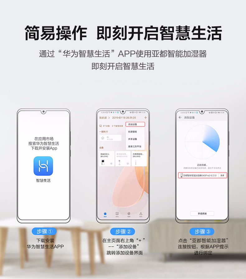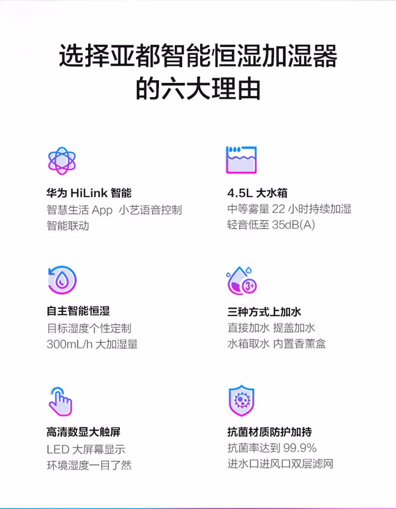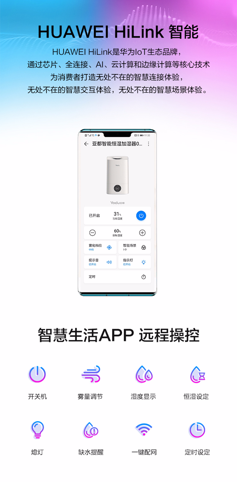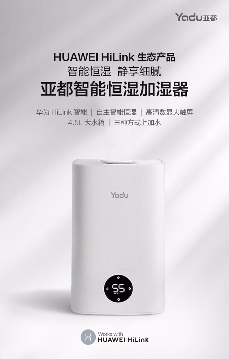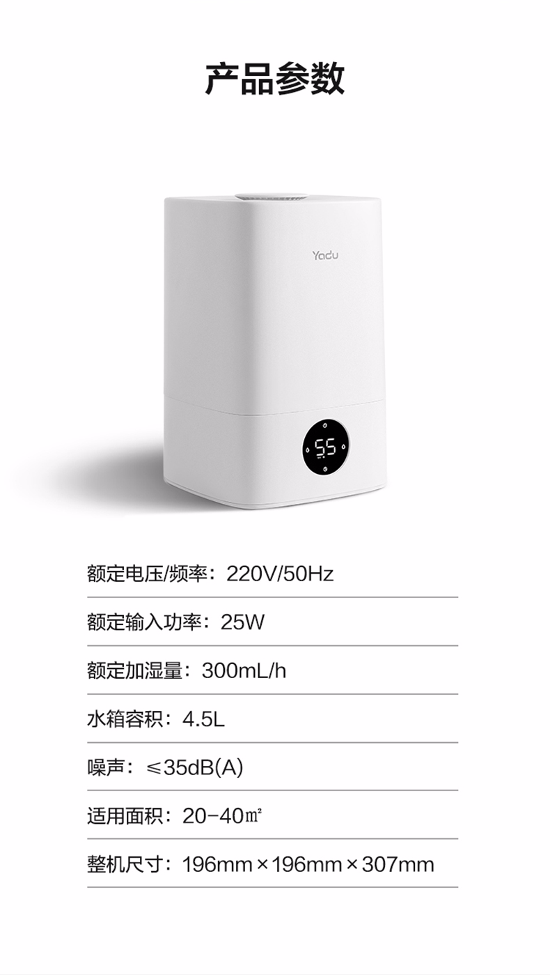華為智選加濕器亞都智能靜音家用臥室辦公室凈化空氣智能大霧量4.5L大容量SC300-S045Pro(Hi)2.0長196寬196高307