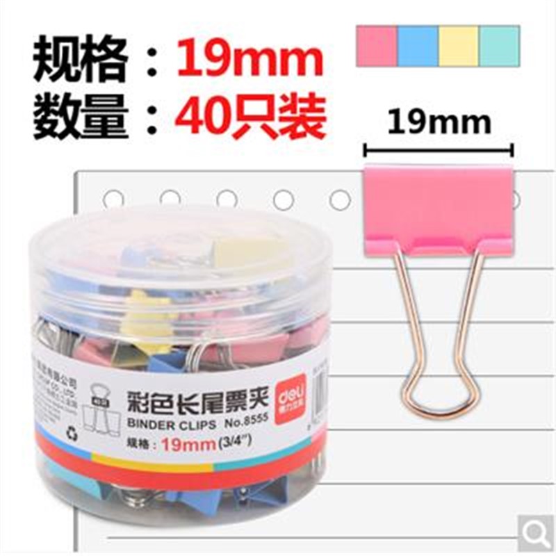 得力(deli)彩色長尾夾票夾8555 5#金屬燕尾夾19*30*24mm(40只/筒)