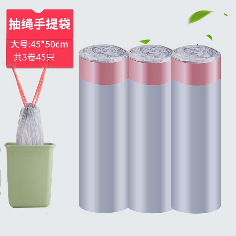 國產(chǎn) 清潔工具 加厚抽繩垃圾袋家用手提式背心自動收口穿繩帶繩塑料袋 40*45銀色 3卷共45只 CS-Z03