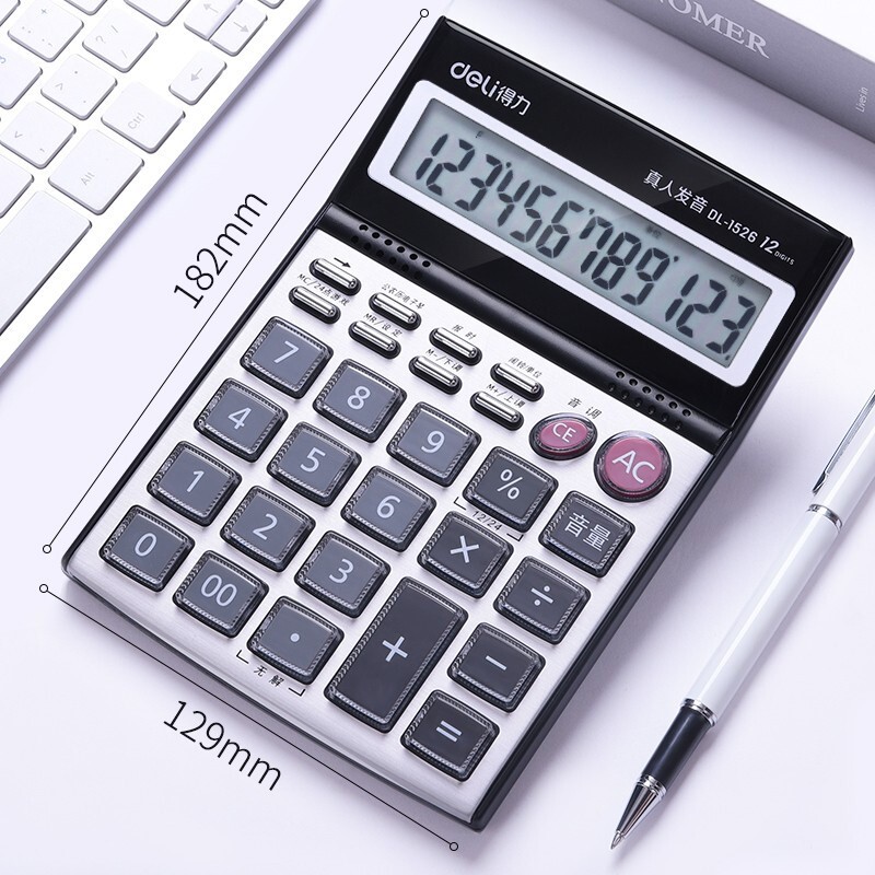 得力(deli) 電子計算器 1526 真人語音發(fā)音大屏幕水晶透明按鍵12位桌面計算器