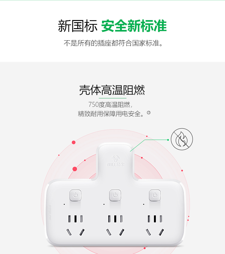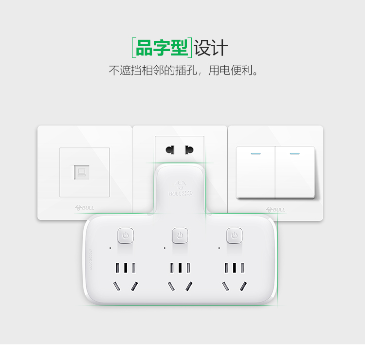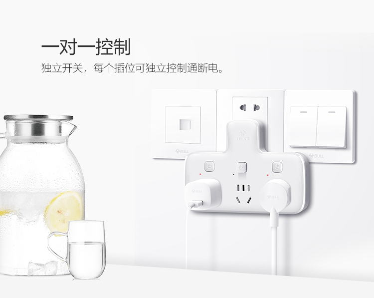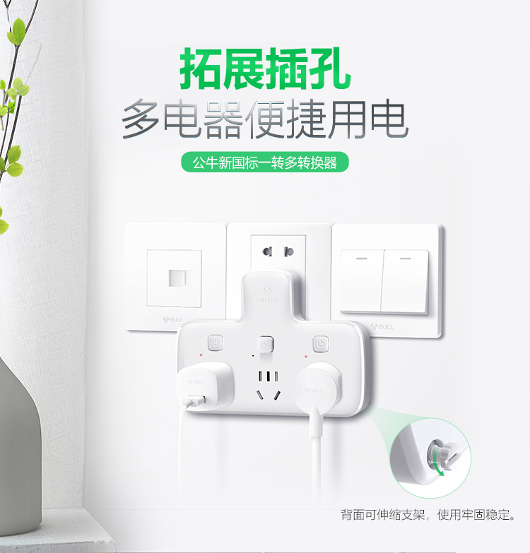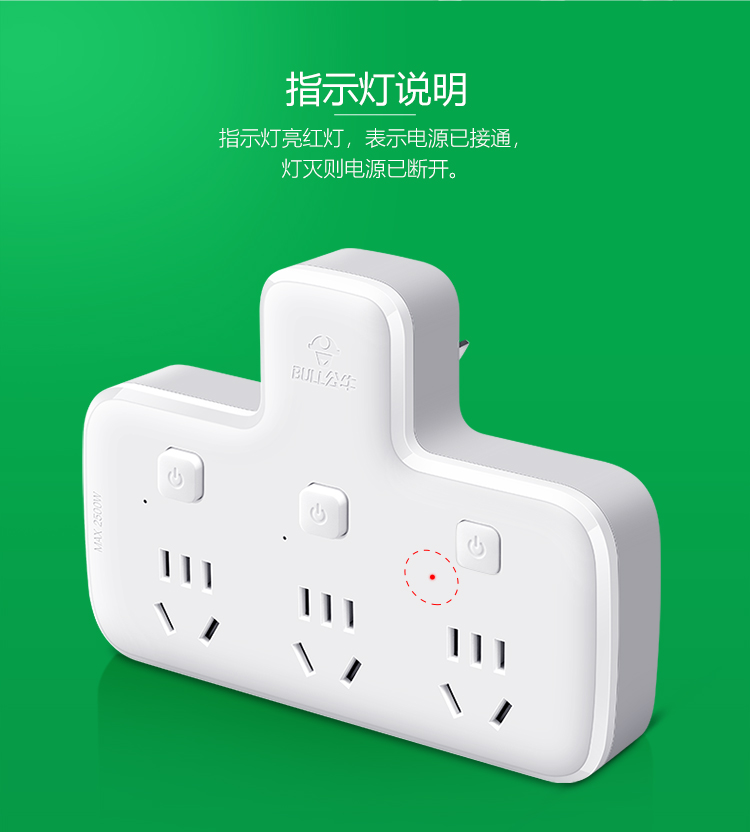 公牛(BULL)轉(zhuǎn)換插頭/品字形一轉(zhuǎn)三插座/無(wú)線轉(zhuǎn)換插座/電源轉(zhuǎn)換器 適用臥室、廚房 3位分控插座 GN-96033