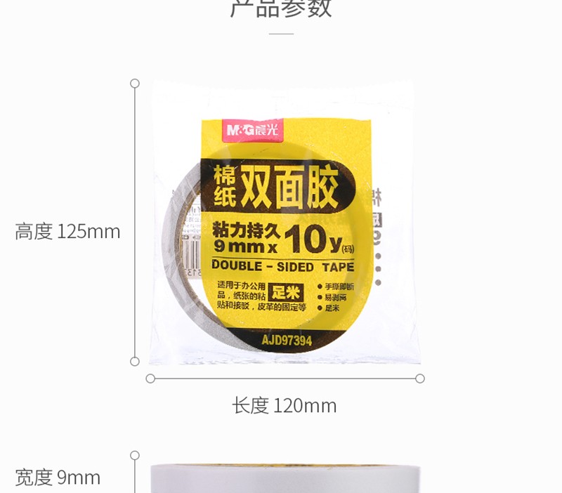 晨光(M&G)文具雙面膠 高粘性棉紙膠帶 學(xué)生辦公通用雙面膠帶9mm*10y(9.1m/裝) 10卷裝 AJD97394