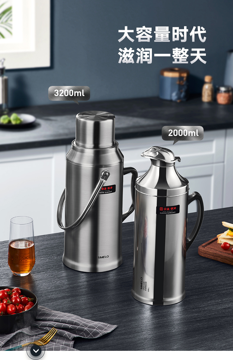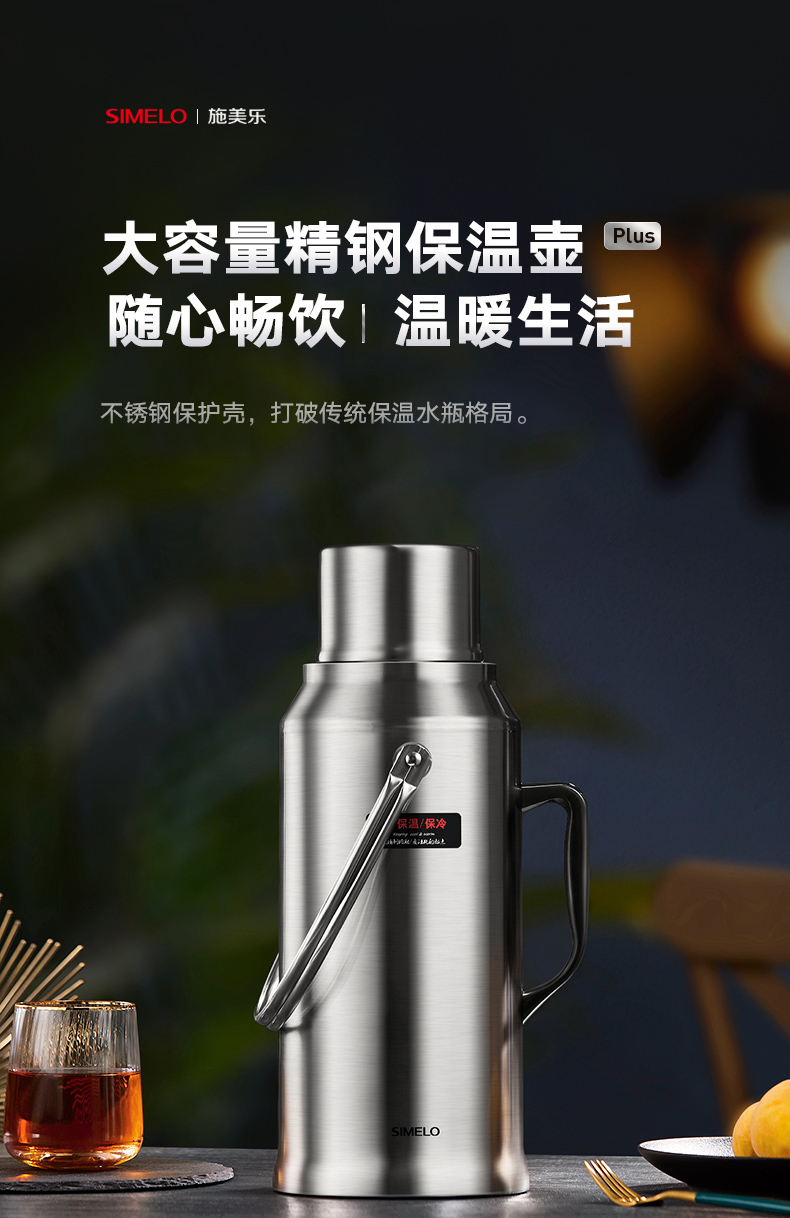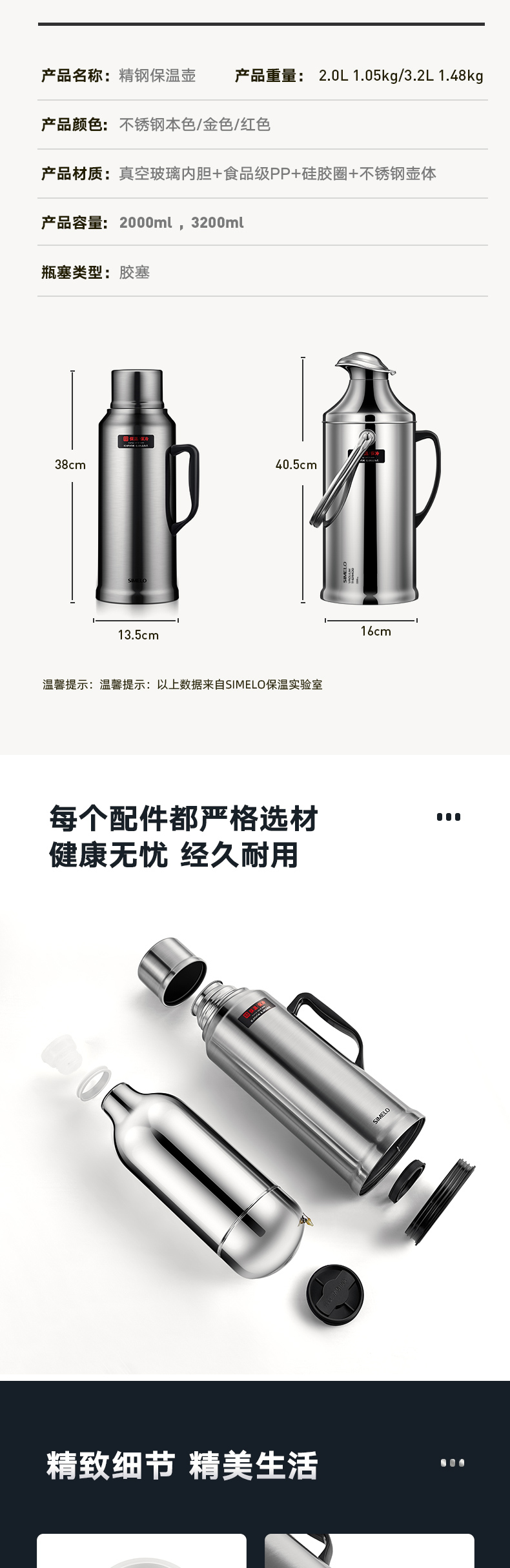 SIMELO保溫壺精鋼玻璃內(nèi)膽熱水瓶大容量暖壺保溫瓶開(kāi)水瓶3.2L亮光