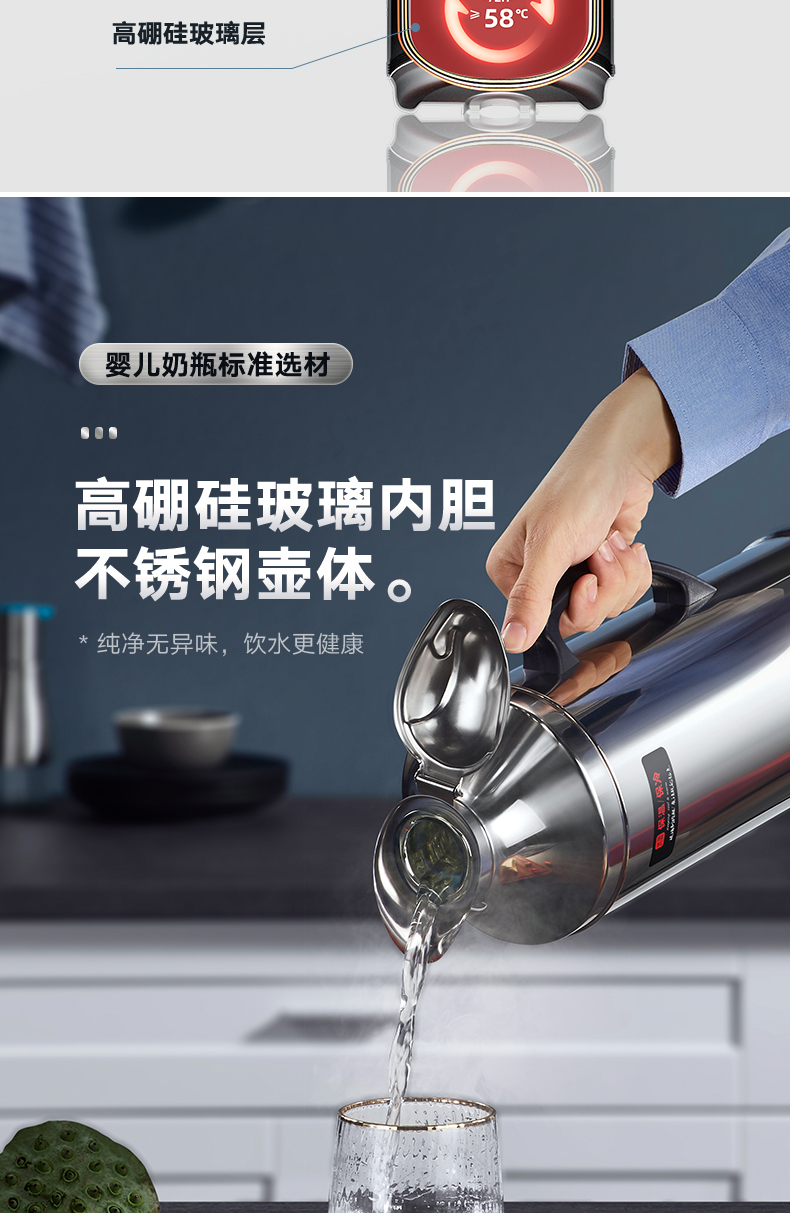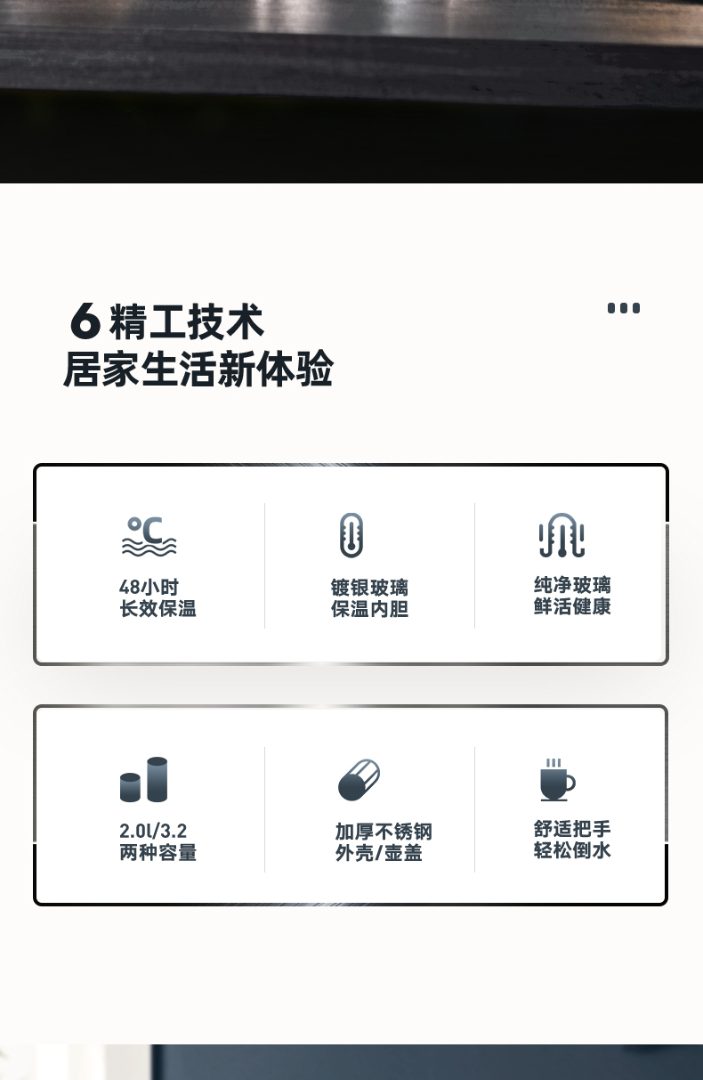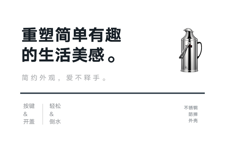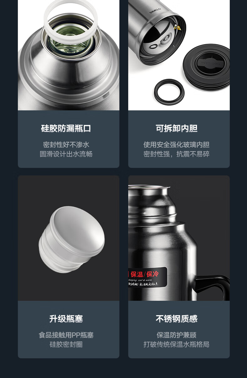 SIMELO保溫壺精鋼玻璃內(nèi)膽熱水瓶大容量暖壺保溫瓶開(kāi)水瓶3.2L亮光