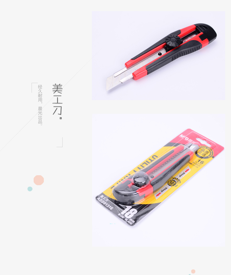 晨光(M&G)文具18mm美工刀大號(hào)壁紙刀不銹鋼自動(dòng)鎖多功能裁紙刀片小號(hào)顏色隨機(jī) ASS91322 單把裝