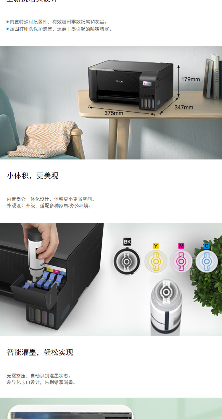 愛普生(EPSON)L3219 連供家用彩色多功能一體機(jī) A4 打印復(fù)印掃描 墨倉(cāng)式打印機(jī) 大墨水 黑色機(jī)身
