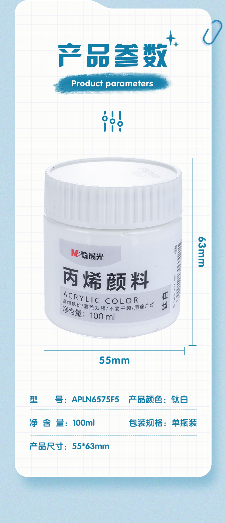 晨光(M&G) 書法繪畫用具 APLN6575F5 文具100ml丙烯顏料黑色 美術(shù)手繪顏料 美術(shù)專用丙烯畫顏料 學(xué)生寫生繪畫工具APLN6575F5開學(xué)禮物