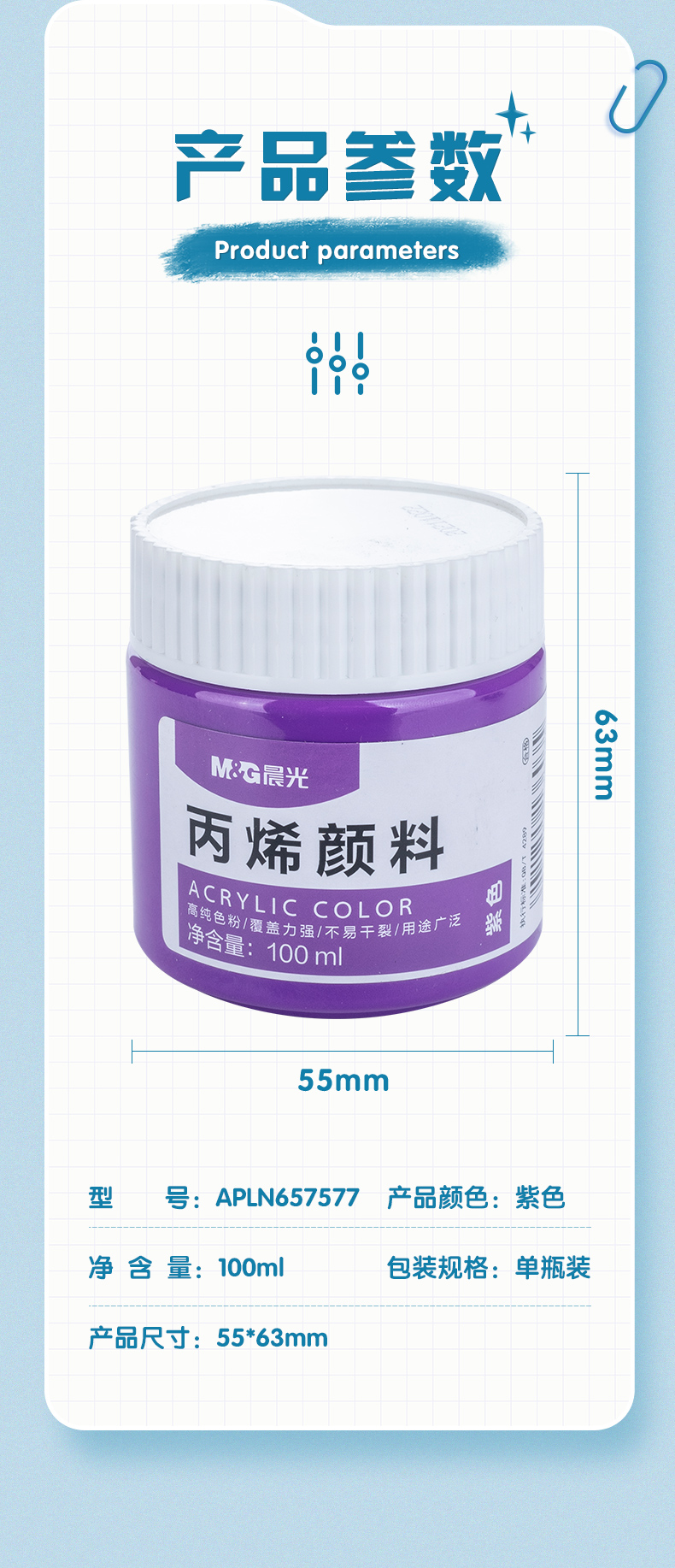 晨光(M&G)書(shū)法繪畫(huà)用具 APLN657577 文具100ml丙烯顏料紫色 美術(shù)手繪顏料 美術(shù)專用丙烯畫(huà)顏料 學(xué)生寫(xiě)生繪畫(huà)工具APLN657577開(kāi)學(xué)禮物