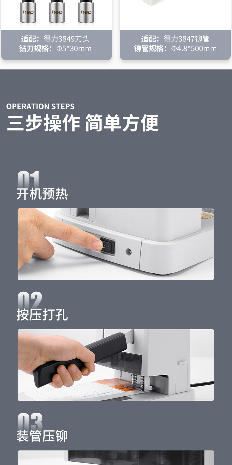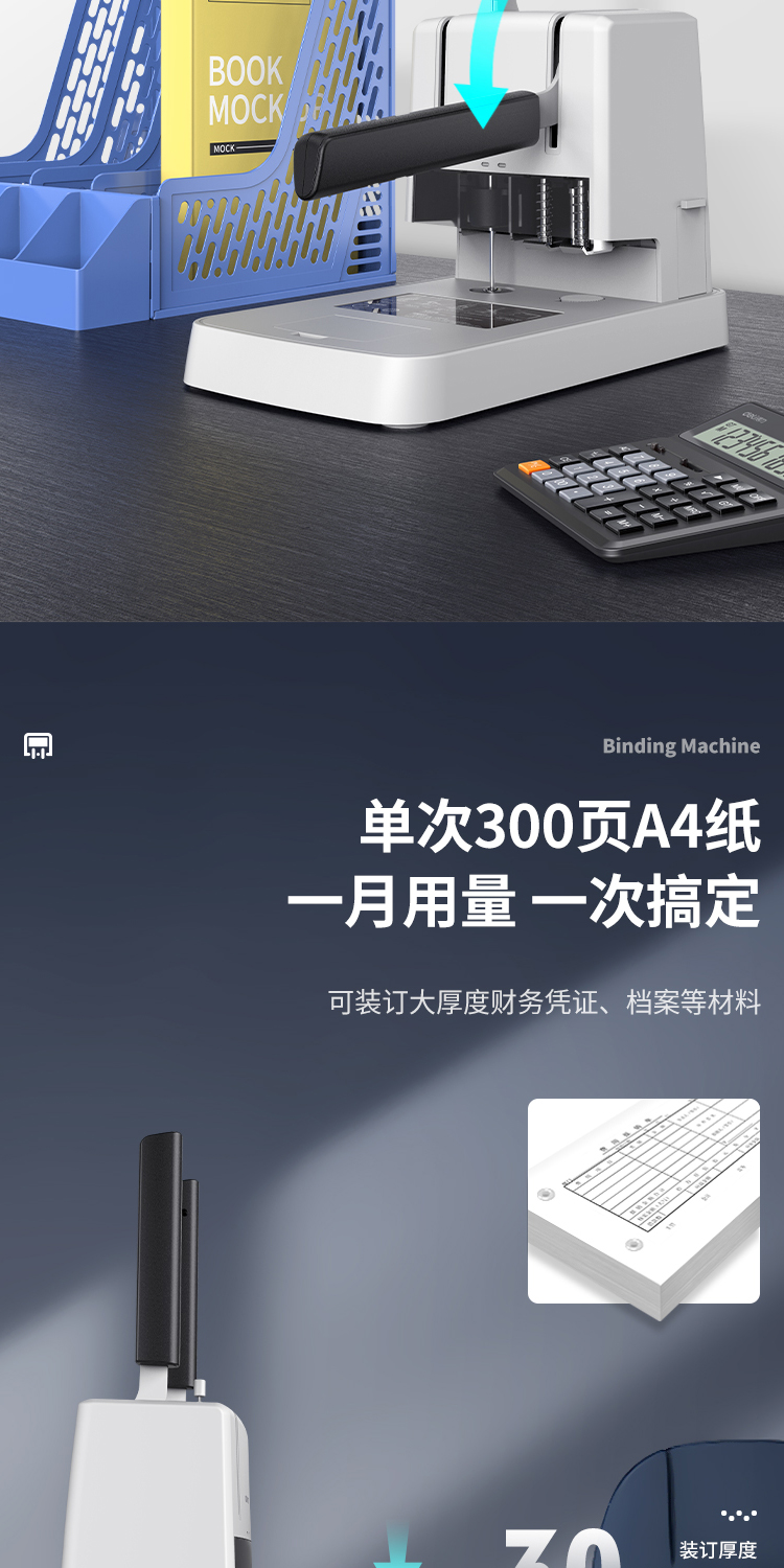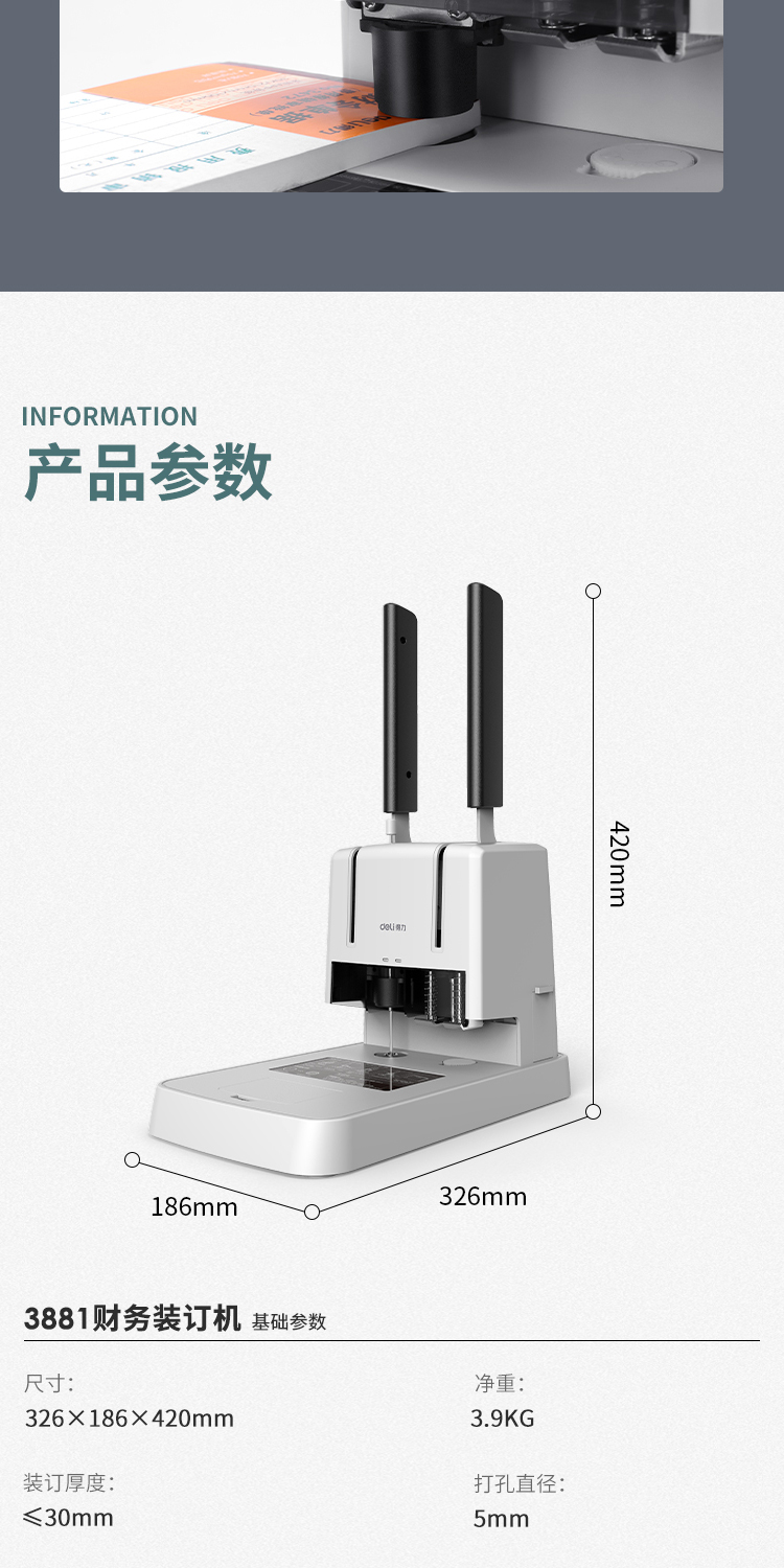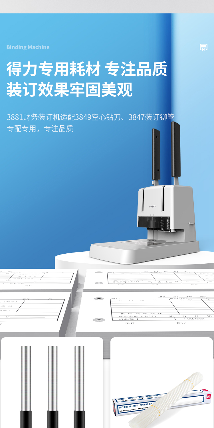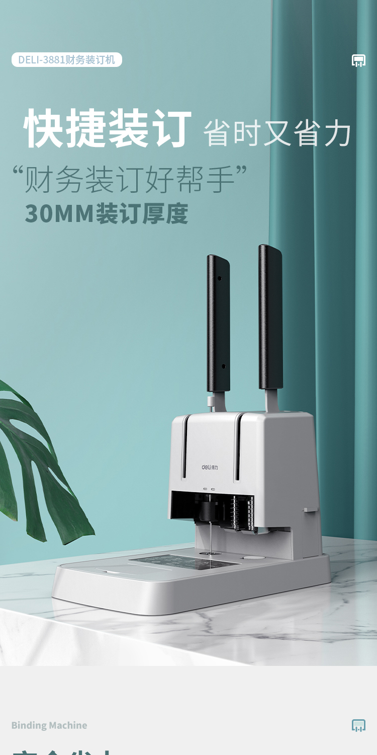 得力 裝訂機 3881 財務(wù)憑證裝訂機(灰)(臺)裝訂機商用