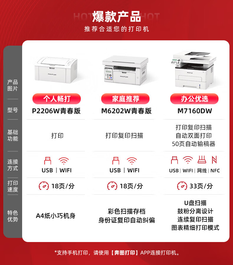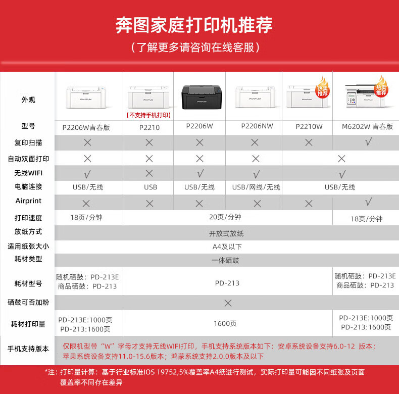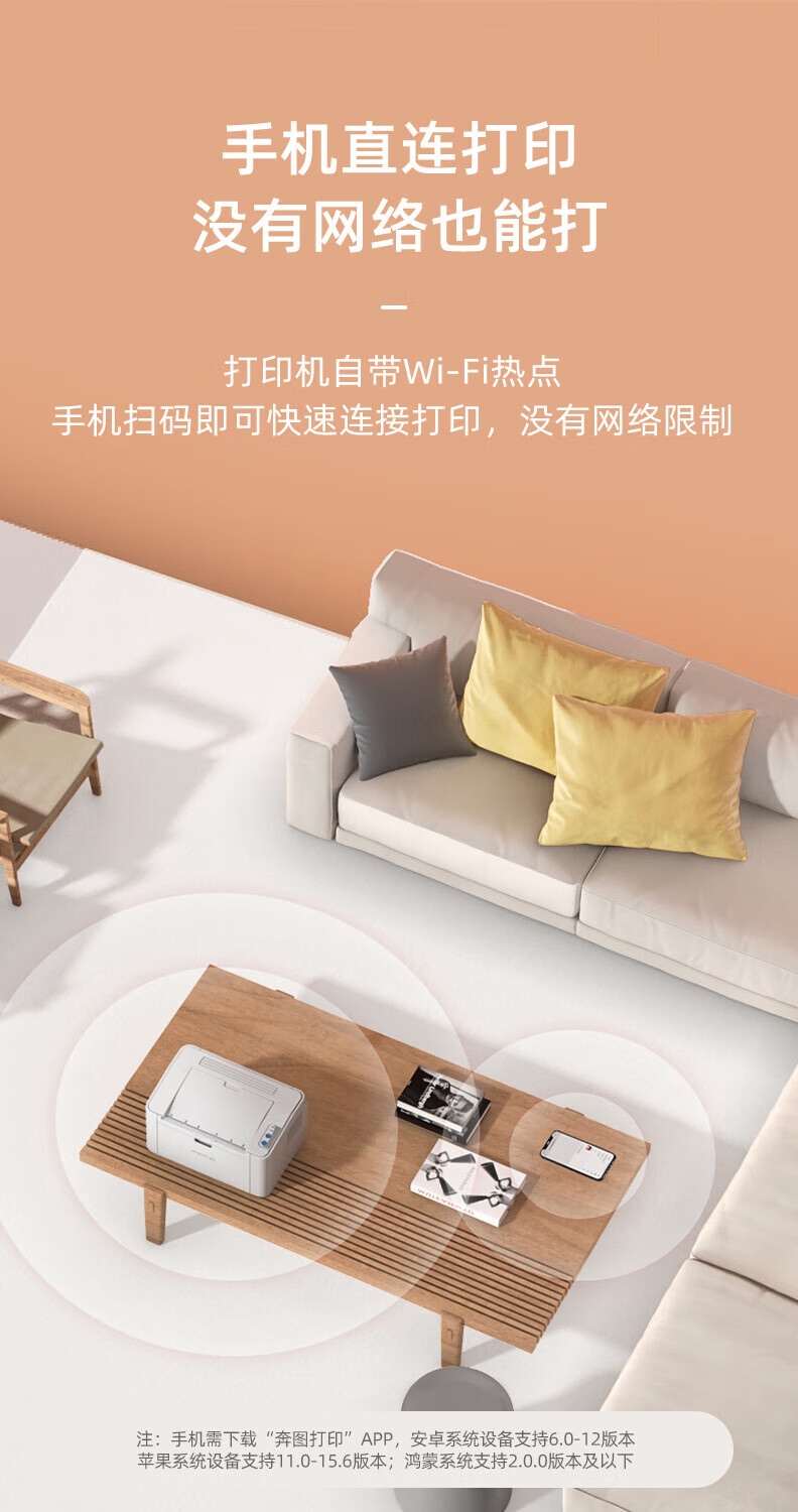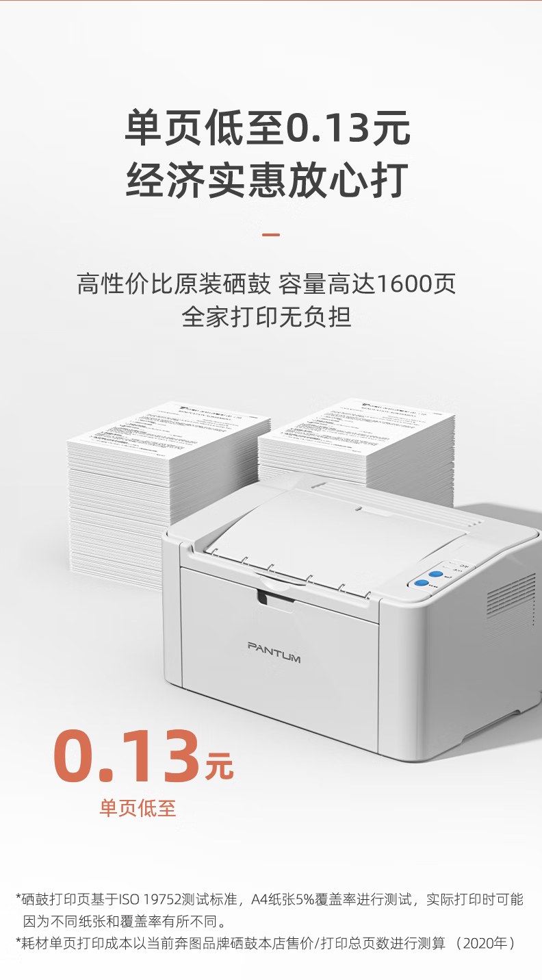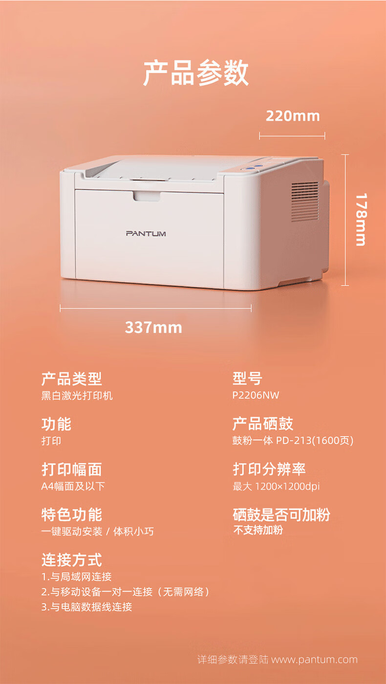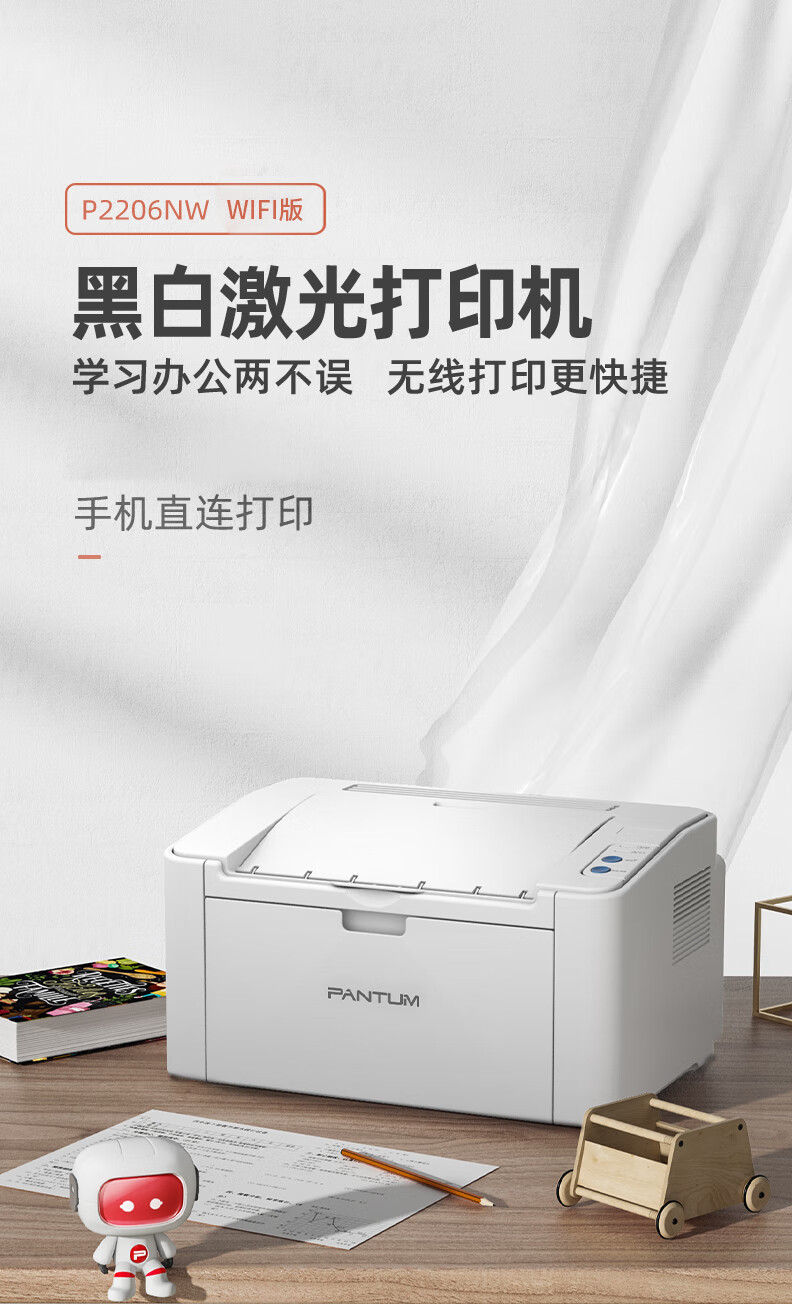 奔圖(PANTUM) 打印機(jī) P2206NW 家用辦公黑白A4激光打印機(jī) 學(xué)生作業(yè)打印 無線WiFi打印 白色