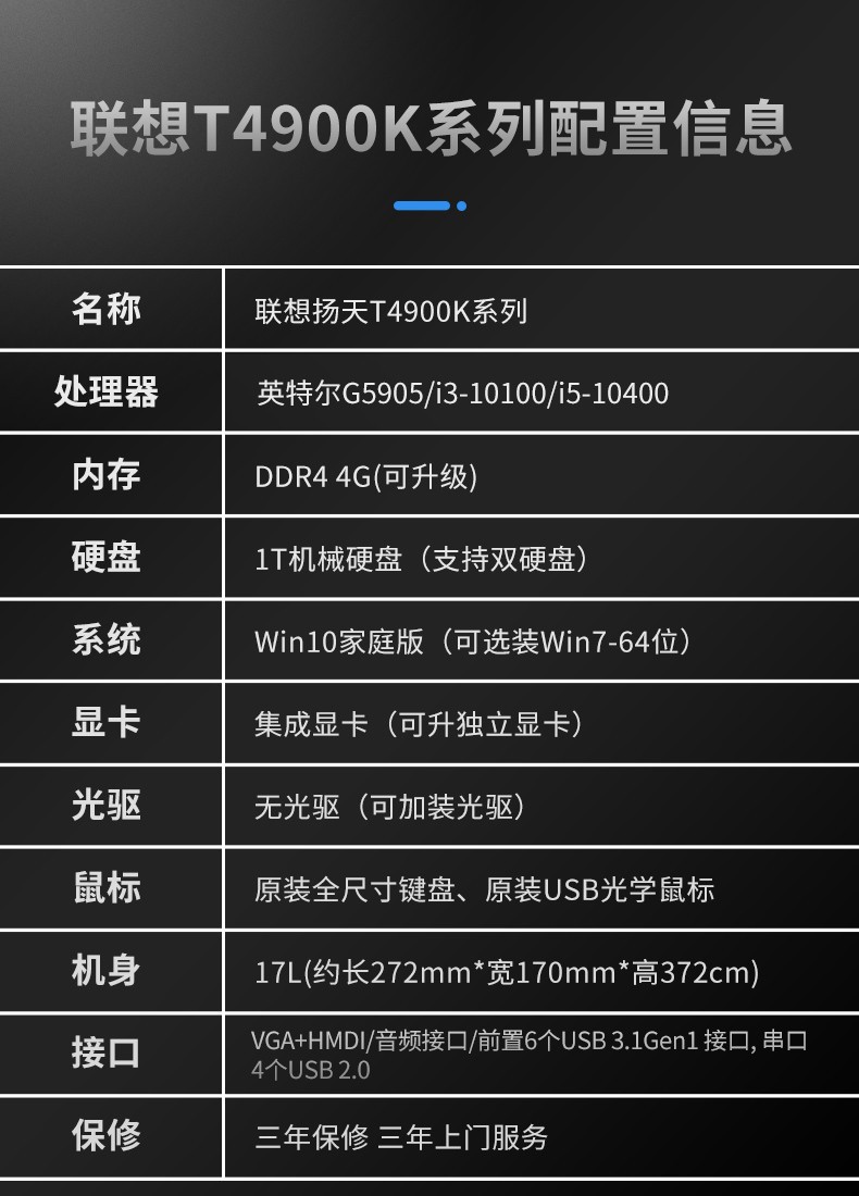 聯(lián)想(Lenovo) 臺式計算機 4900Ks 家用商用辦公財務(wù)學(xué)習(xí)稅控WIN7臺式機電腦主機 單主機+21.45英寸顯示器 選配:i3-10105 4G 1T W10