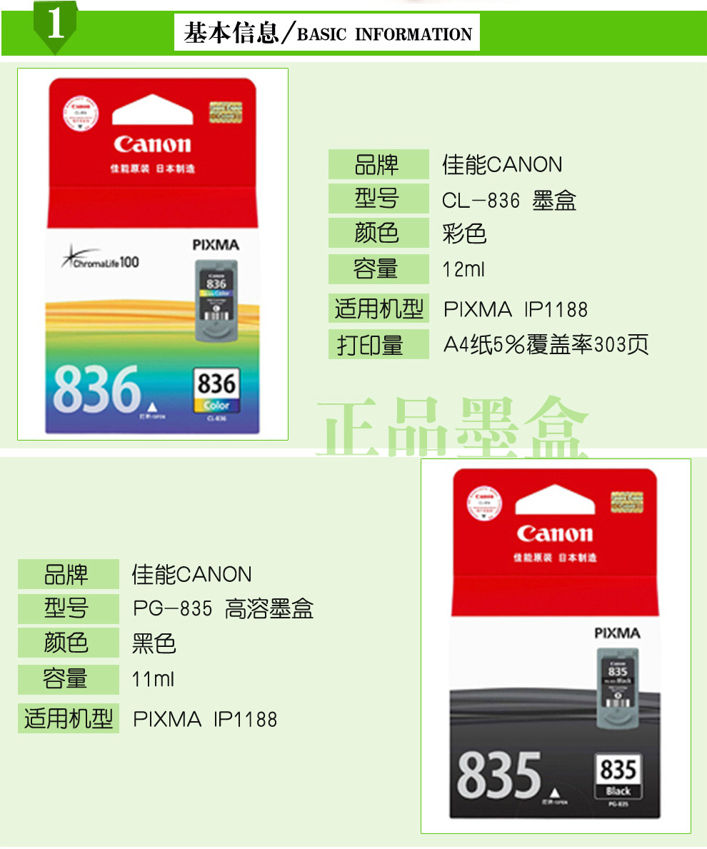 佳能/Canon 噴墨盒 PG-836 原裝墨盒適用IP1188打印機(jī) 836