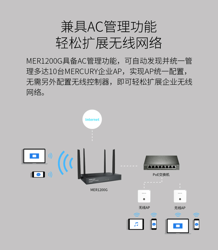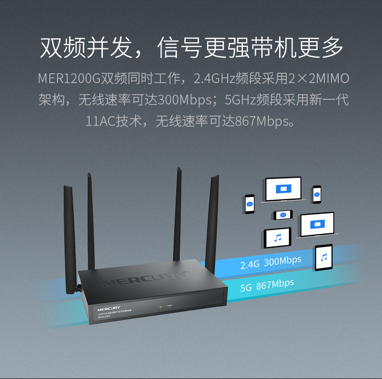 水星(MERCURY)路由器 MER1200G 雙頻無線企業(yè)級(jí)路由器