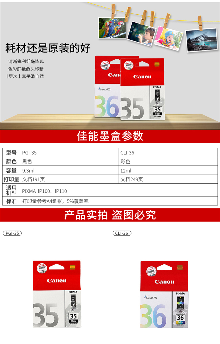 佳能(Canon)噴墨盒 PGI-35 原裝黑色墨盒適用PIXMA iP100 iP110