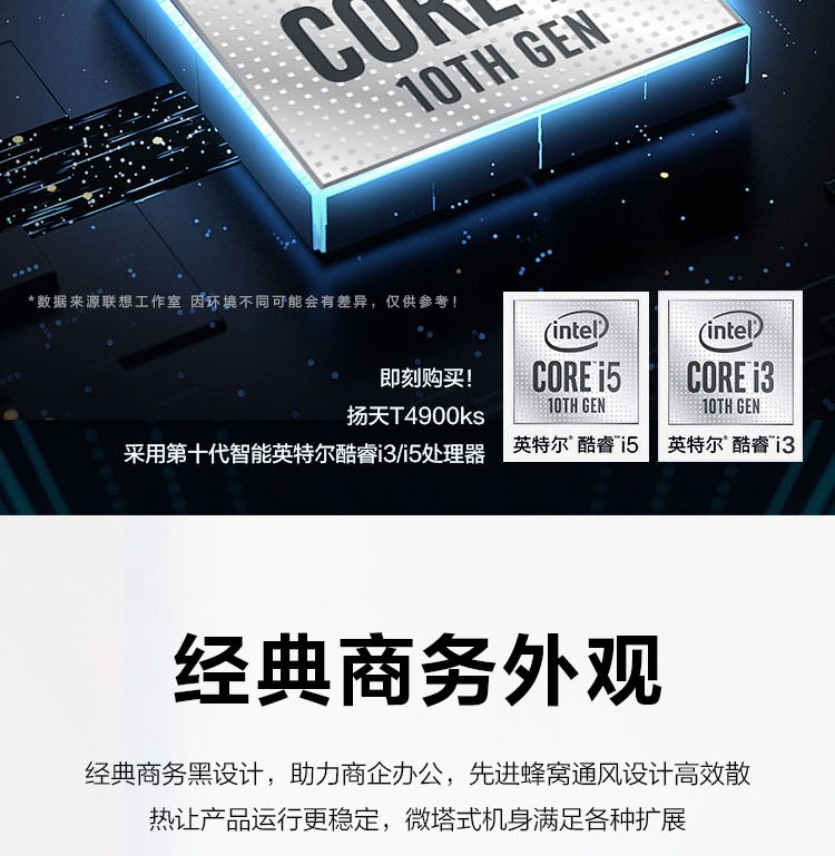 聯(lián)想 揚天 臺式計算機 T4900KS00商用稅控辦公臺式機+22液晶 I3-10105 8G 1T+256G