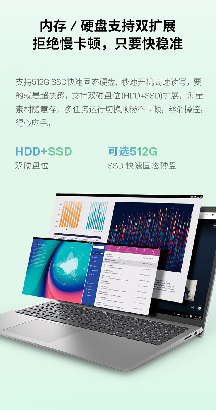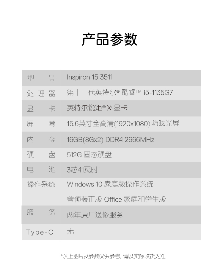 戴爾 dell靈越 便攜式計算機 3511 全面屏輕薄本15.6(酷睿i5 16G 512G 銳炬顯卡)銀 微邊框