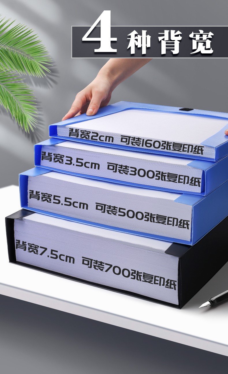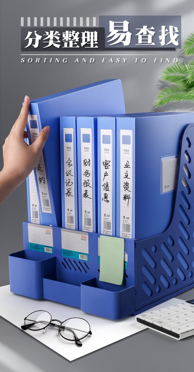 快力文 檔案盒 N5889 塑料文件盒 文件收納資料盒 側(cè)寬55mm/藍(lán)色