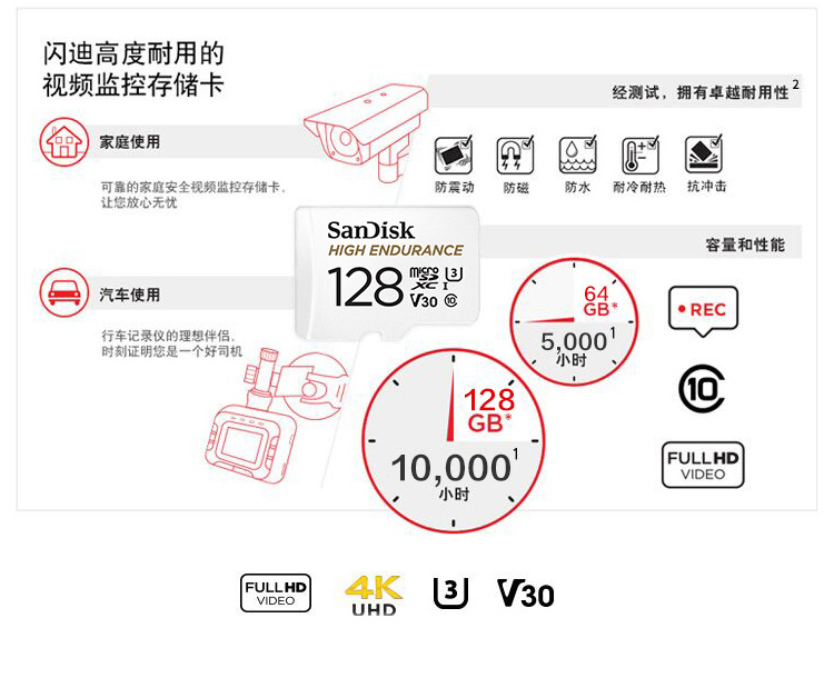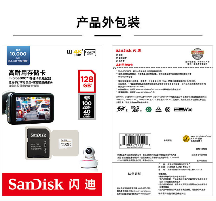 閃迪(SanDisk)U盤/儲(chǔ)存卡 Mi859 128GB TF存儲(chǔ)卡 行車記錄儀&安防監(jiān)控專用內(nèi)存卡