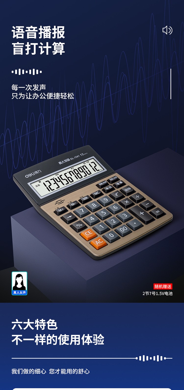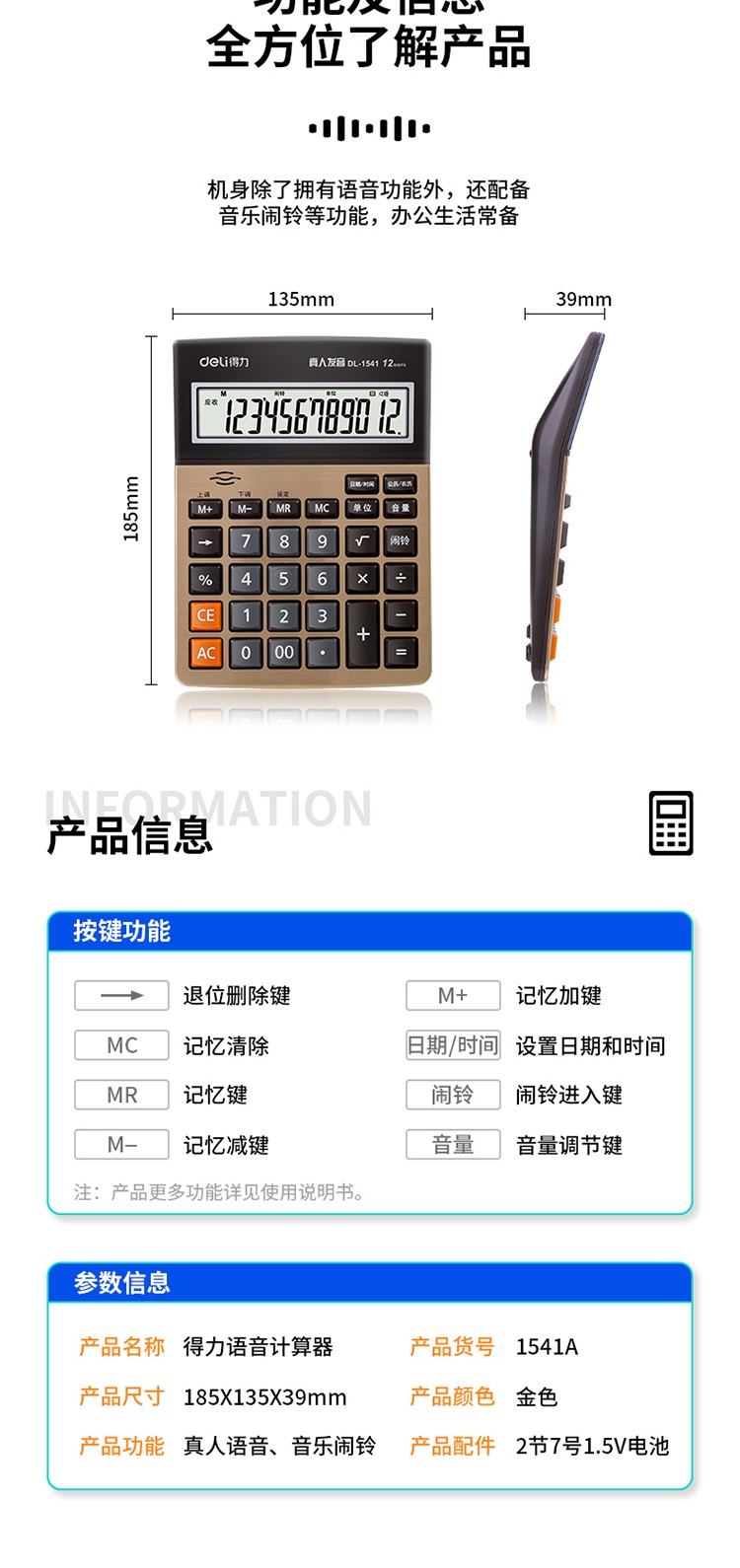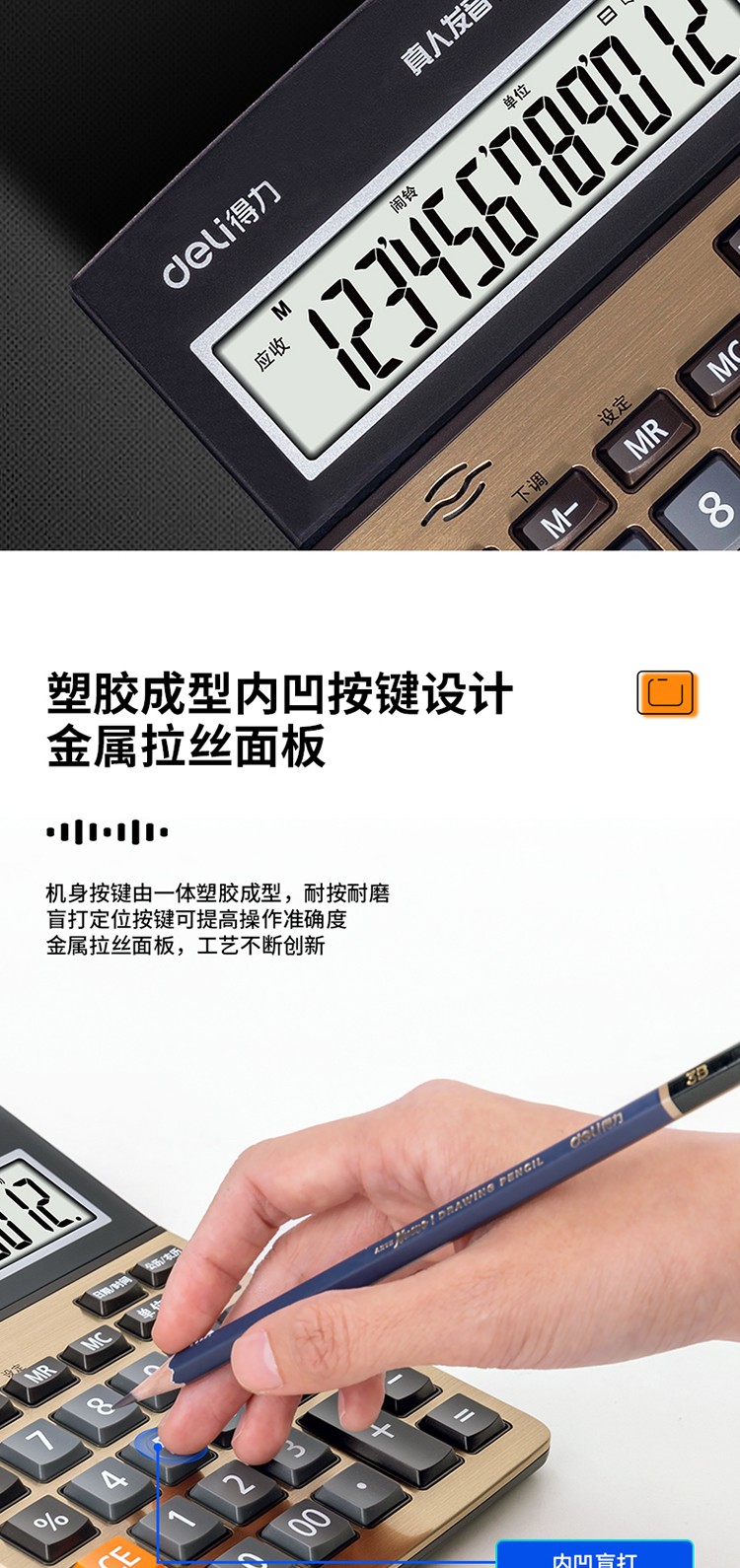 得力(deli)1541A 電子計(jì)算器 語音計(jì)算機(jī) 金色