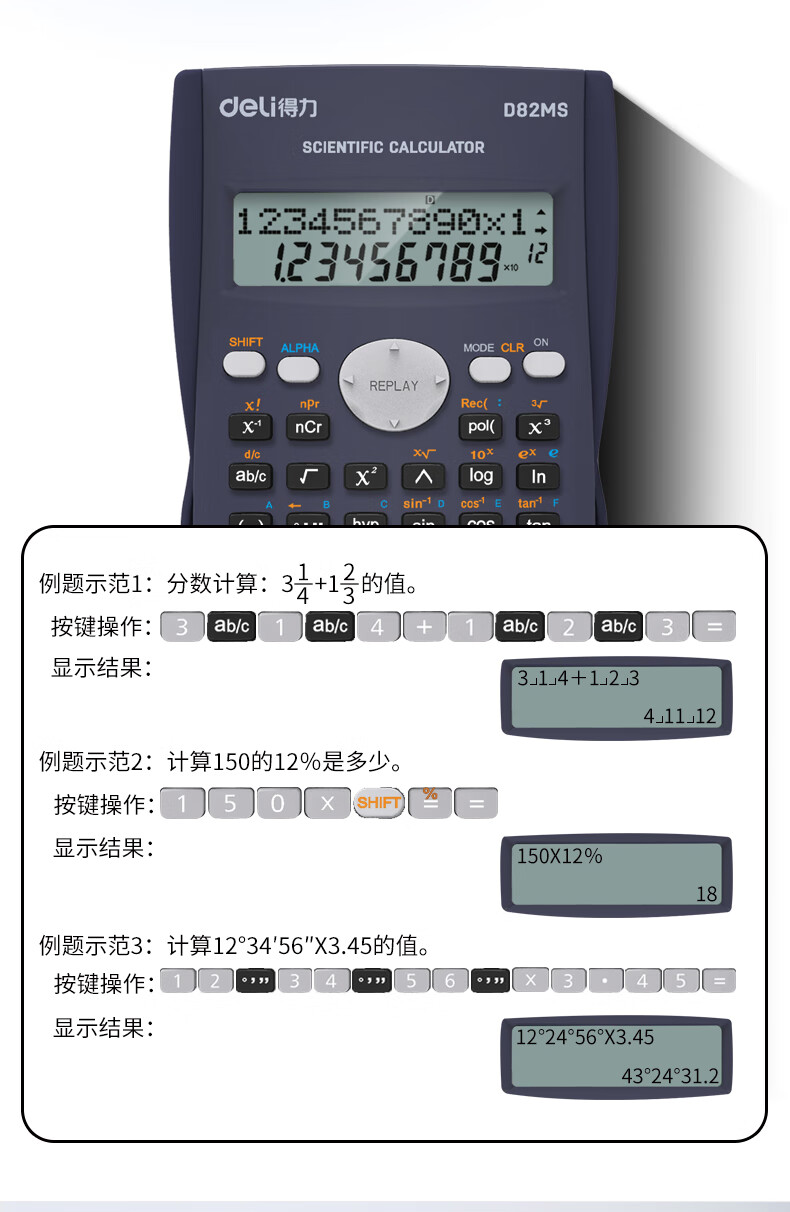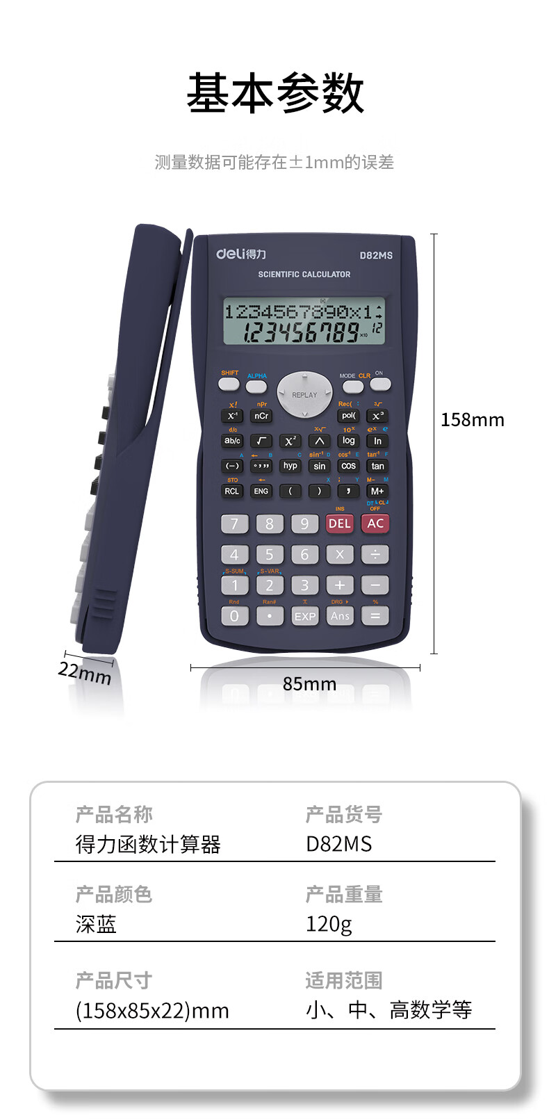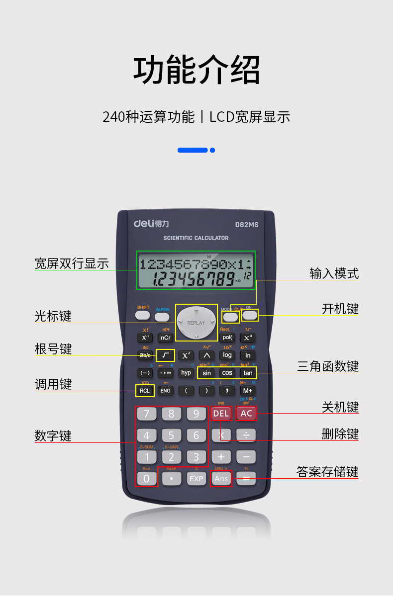 得力(deli) D82MS 電子計(jì)算器 240種功能考試計(jì)算機(jī) (適用于初高中生) 深藍(lán)