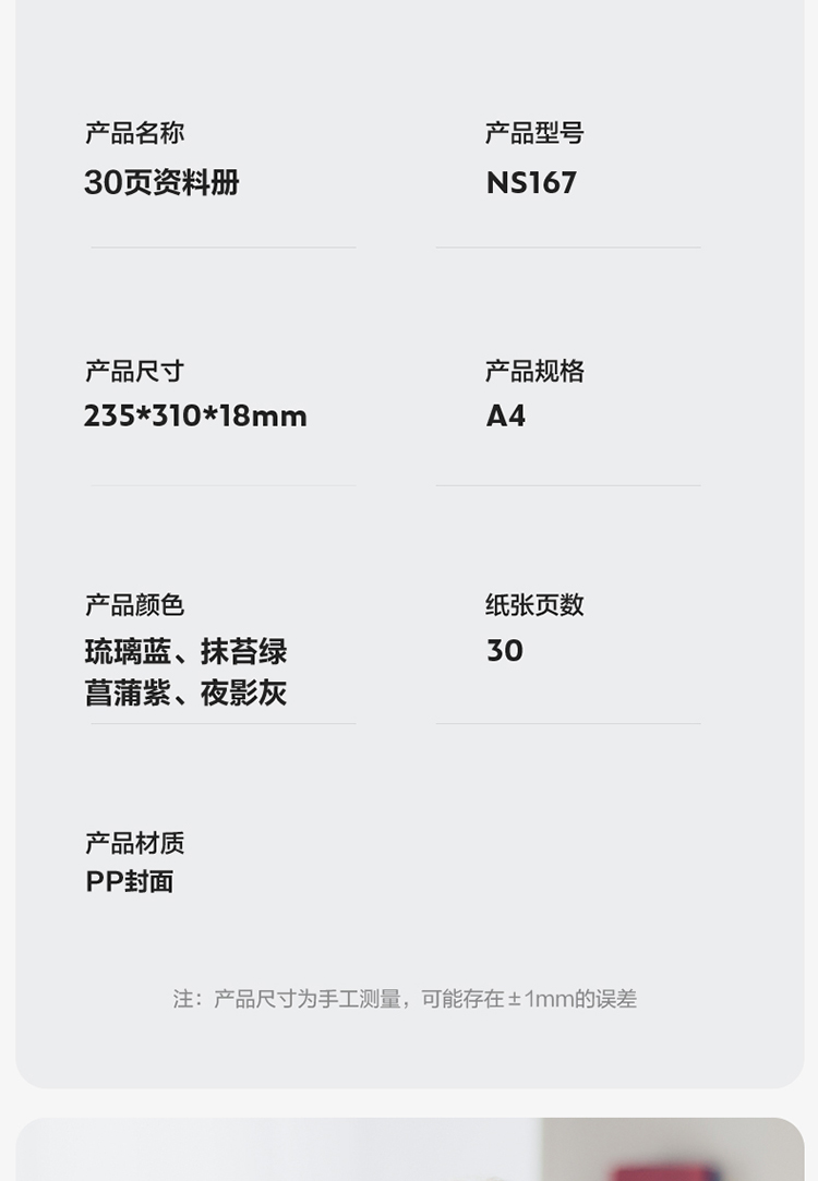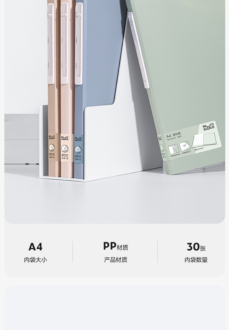 得力(deli)NS167 文件夾 資料冊 紐賽 和風(fēng)色系資料冊A4/30頁 彩色文件收納帶注塑背條設(shè)計 文件夾辦公文具 顏色隨機