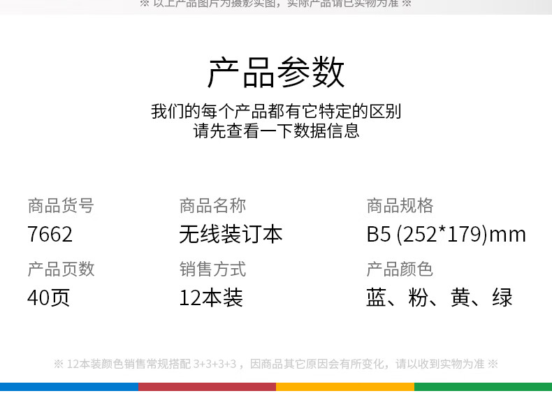 得力(deli) 7662 薄本冊(cè) B5/40張無(wú)線裝訂軟抄本 記事本/ 工作筆記本子/ 日記本 文具辦公用品