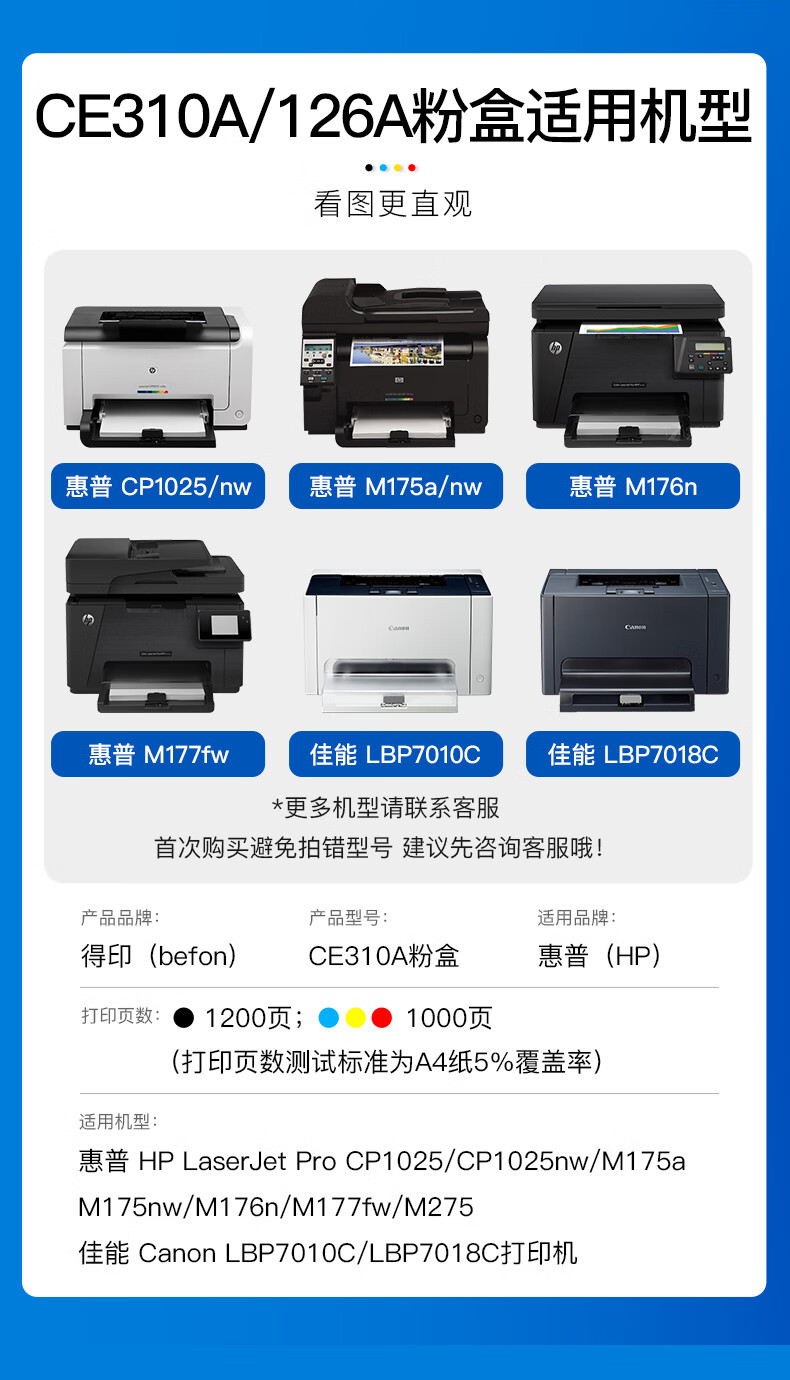 得印 粉盒 CE310A 粉盒四色套裝 適用惠普HP CP1025硒鼓M176n墨盒M177fw LBP7010C M176FN碳粉盒帶芯片