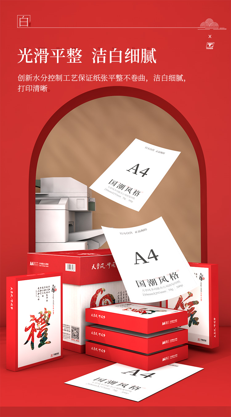 天章(TANGO)A4打印紙 70g 中檔品質(zhì)款A(yù)4紙 復(fù)印紙 500張/包 5包/箱(2500張)