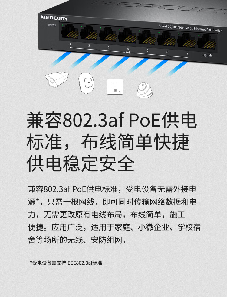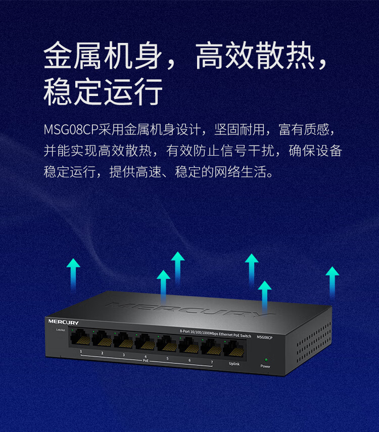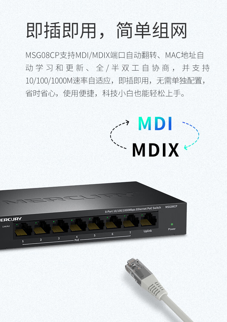 水星MERCURY MSG08CP 以太網(wǎng)交換機 8口交換機 8口百兆塑殼