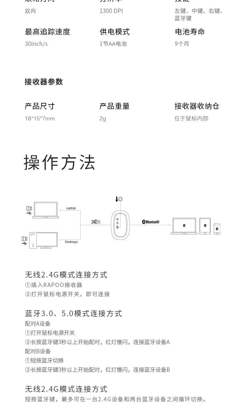 雷柏(Rapoo) M650 鼠標(biāo) 無線鼠標(biāo) 辦公鼠標(biāo)
