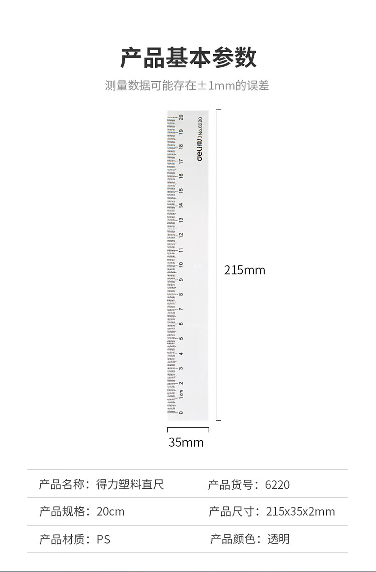 得力(deli) 6220 直尺 20cm 辦公通用直尺