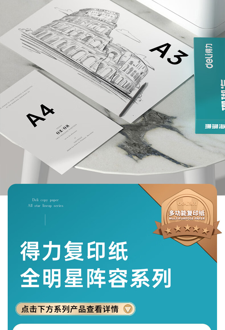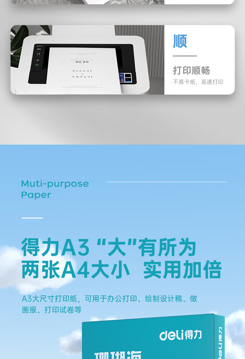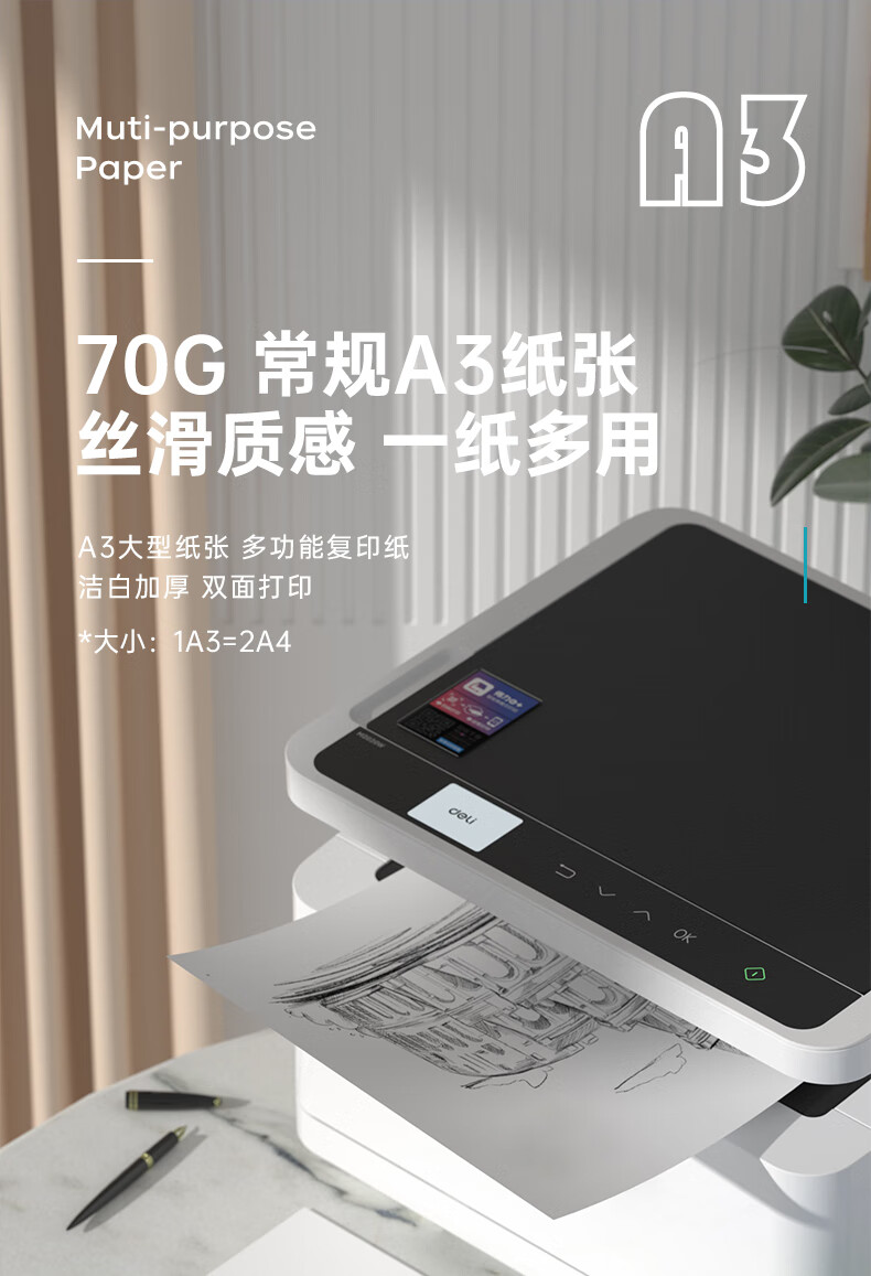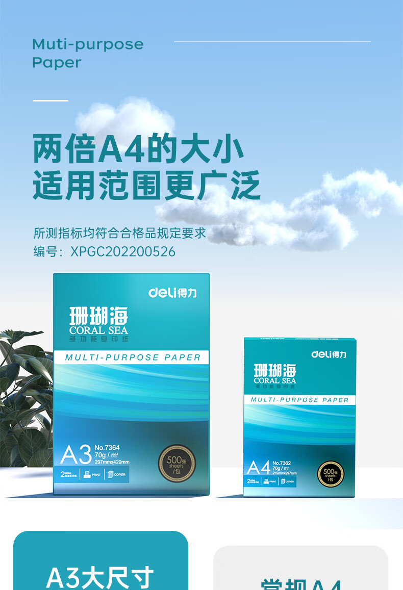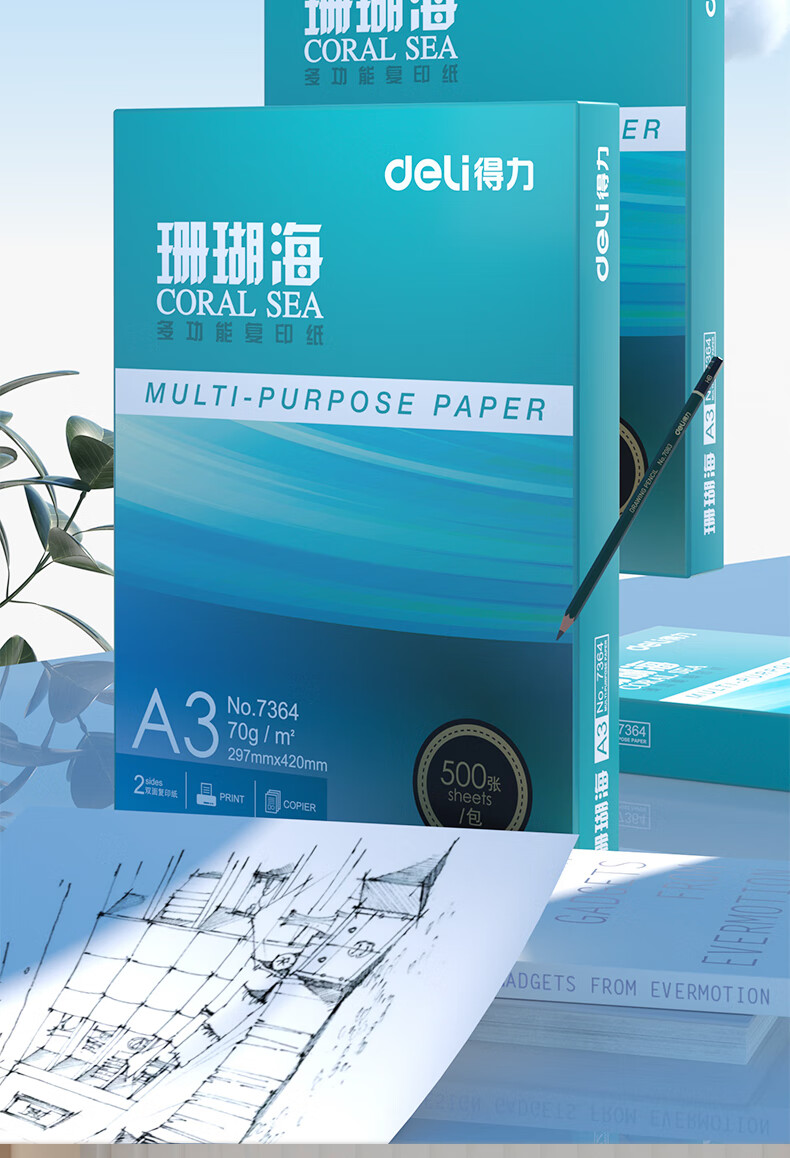 得力(deli)珊瑚海 A3復(fù)印紙70g克500張*5包/箱