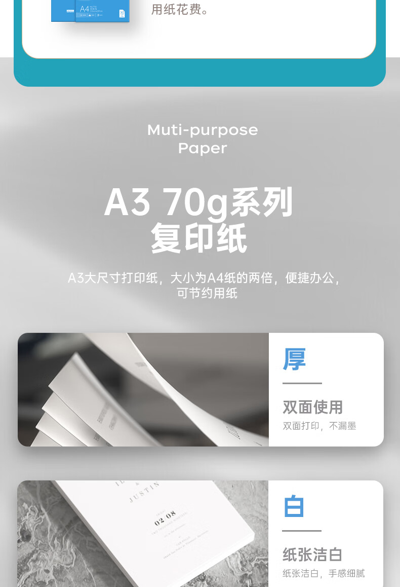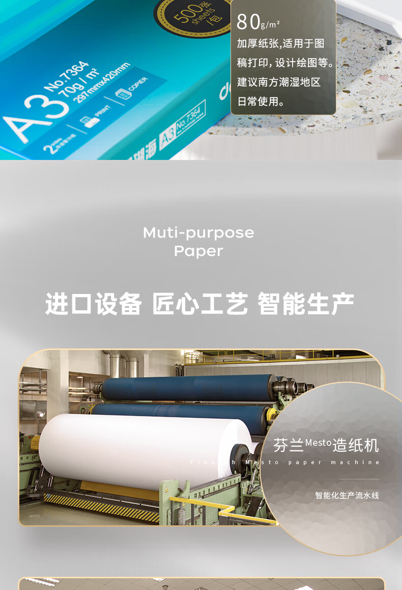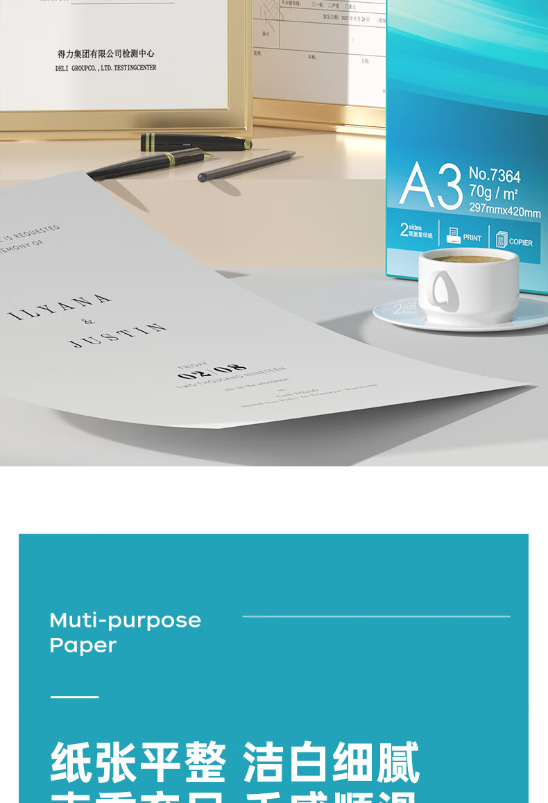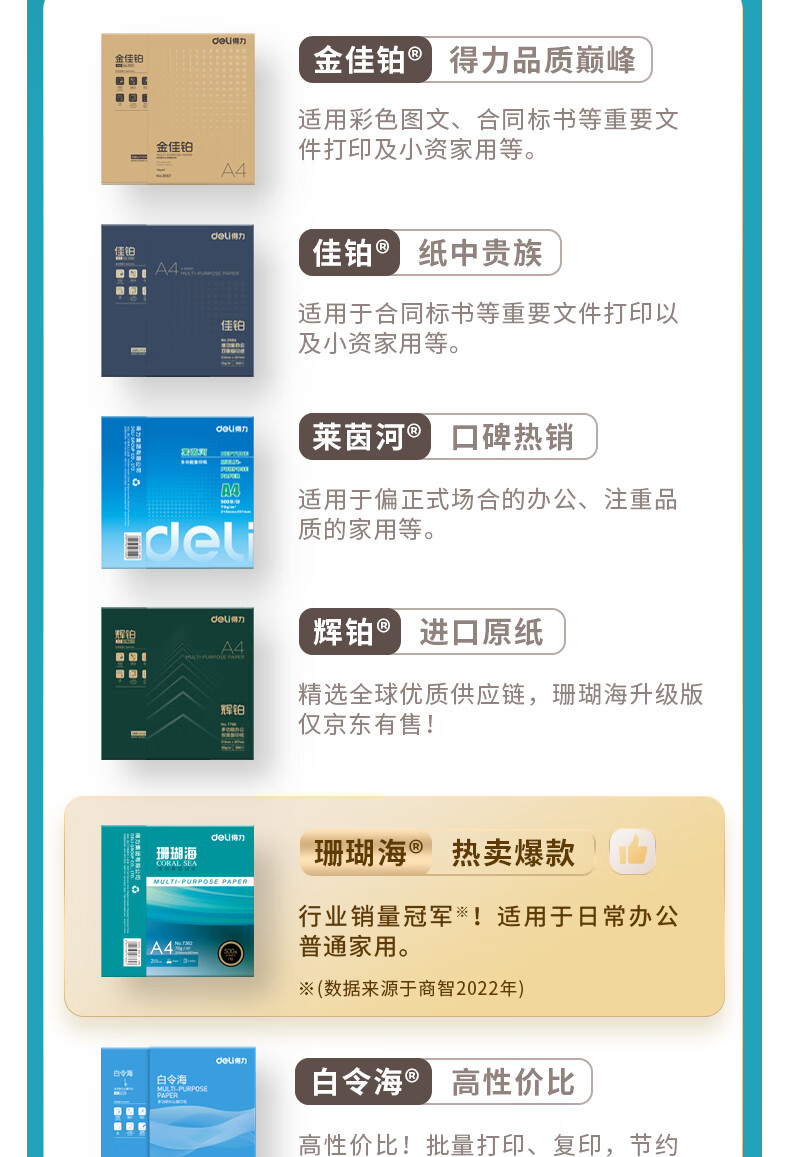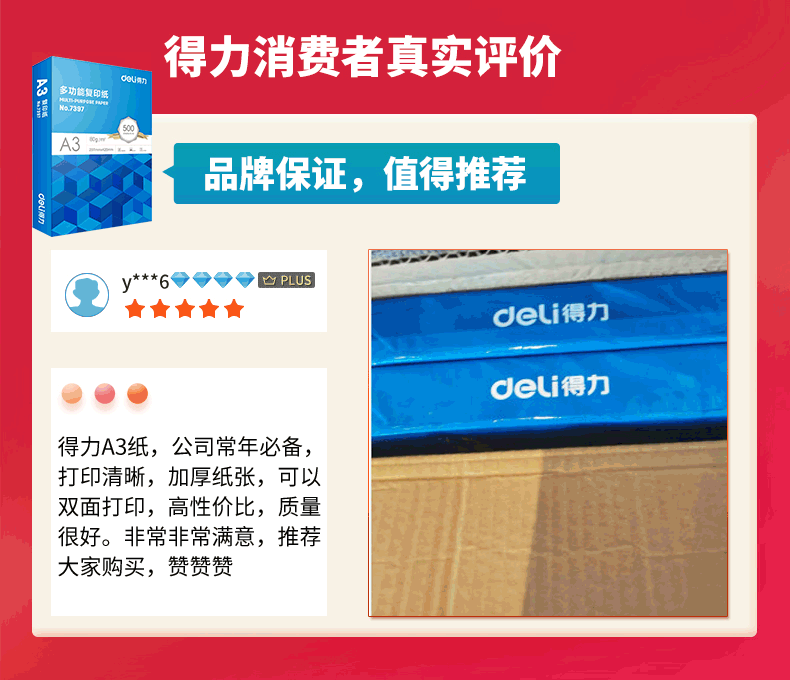 得力(deli)珊瑚海 A3復(fù)印紙70g克500張*5包/箱