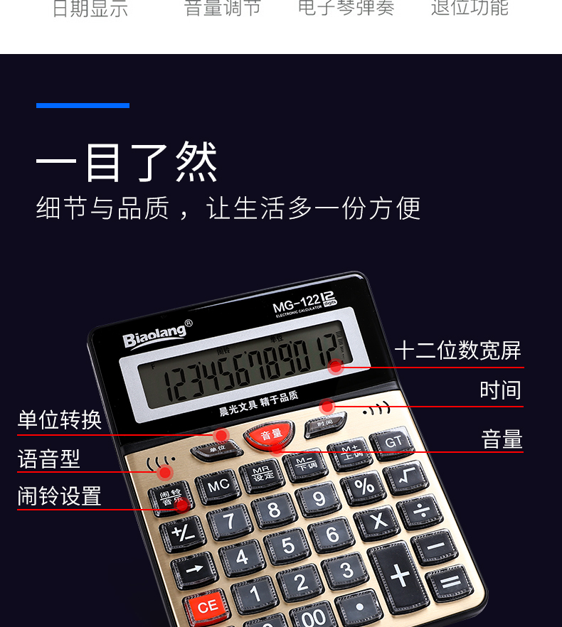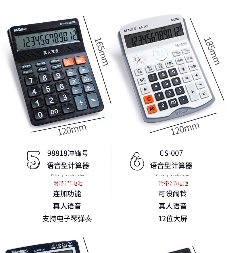 晨光 計(jì)算器帶語音商務(wù)辦公用品店鋪用計(jì)算機(jī)器大號大按鍵大屏幕女發(fā)音財(cái)務(wù)學(xué)生會計(jì)專用音樂小號便攜 語音計(jì)算器 ADG98818