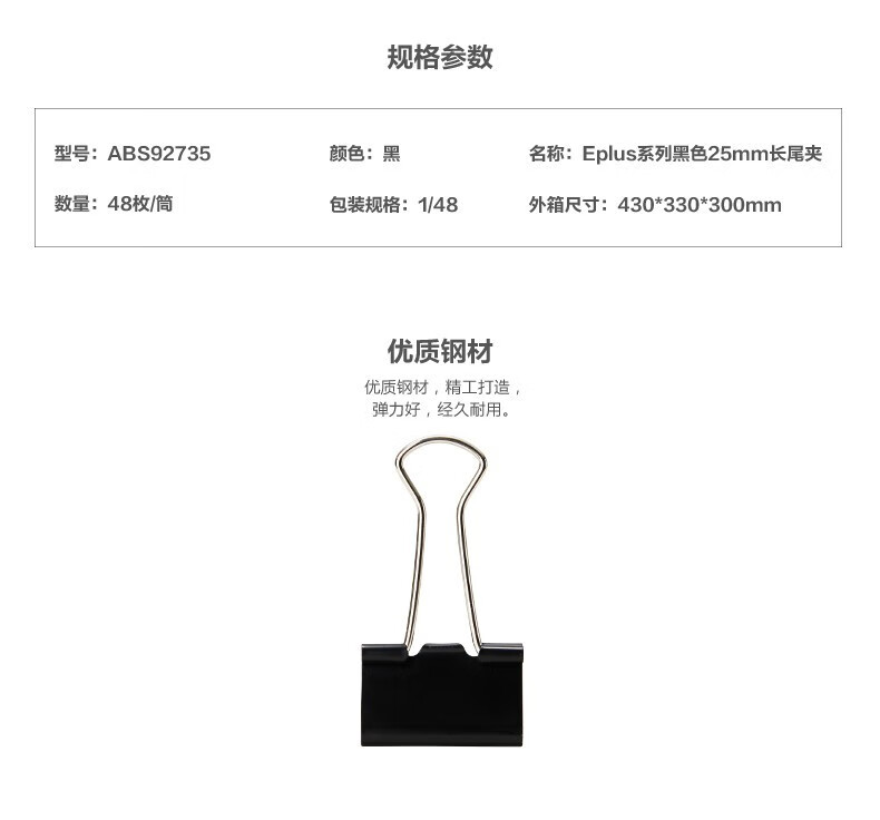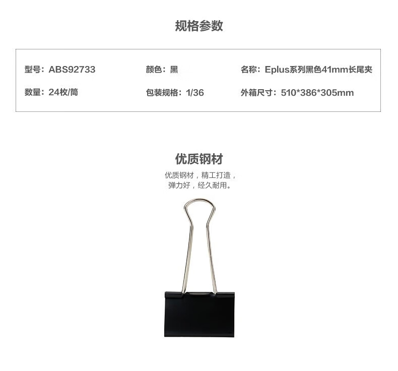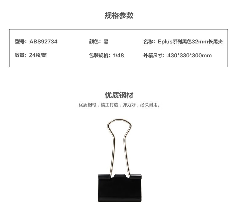 晨光(M&G) 長尾夾大號夾子小號多功能書夾子試卷夾燕尾夾鳳尾夾 32mm 24個/筒ABS92734