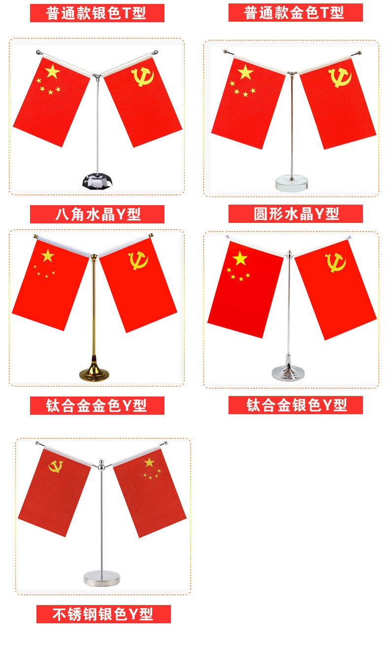 格立特 國(guó)慶節(jié)桌面黨旗國(guó)旗擺件辦公室小國(guó)旗會(huì)議室會(huì)議桌旗小紅旗辦公桌擺件擺臺(tái)臺(tái)旗幟帶底座 不銹鋼Y型(配黨旗國(guó)旗)Y589