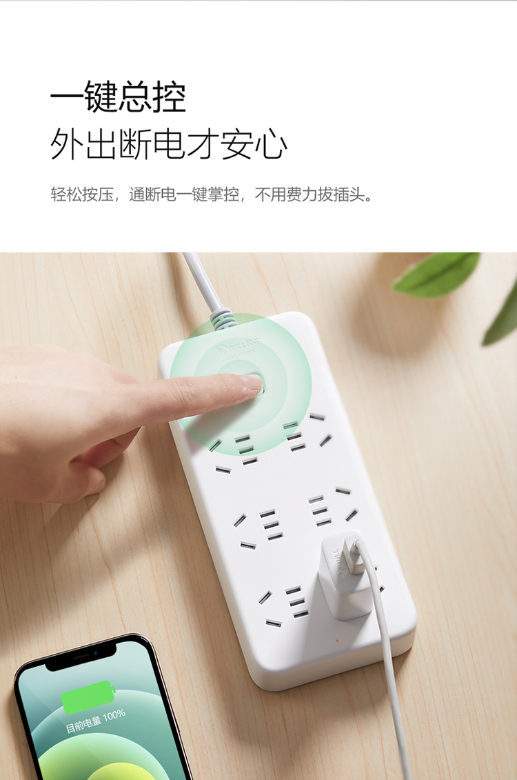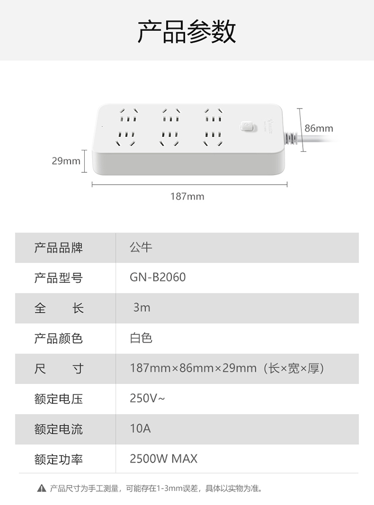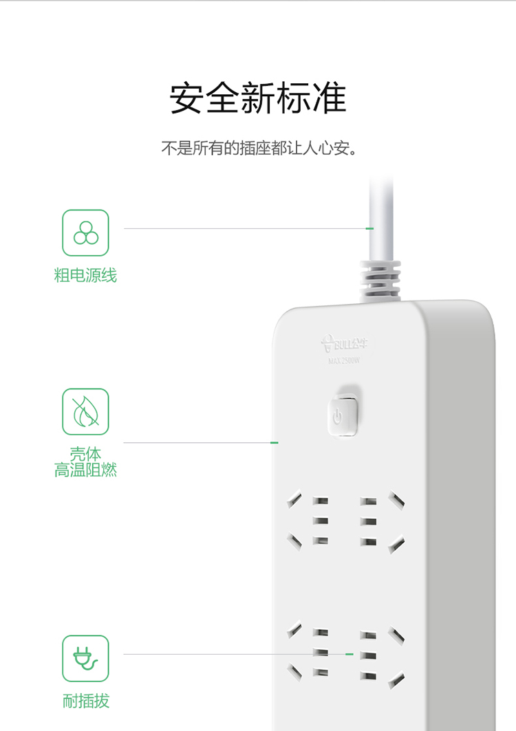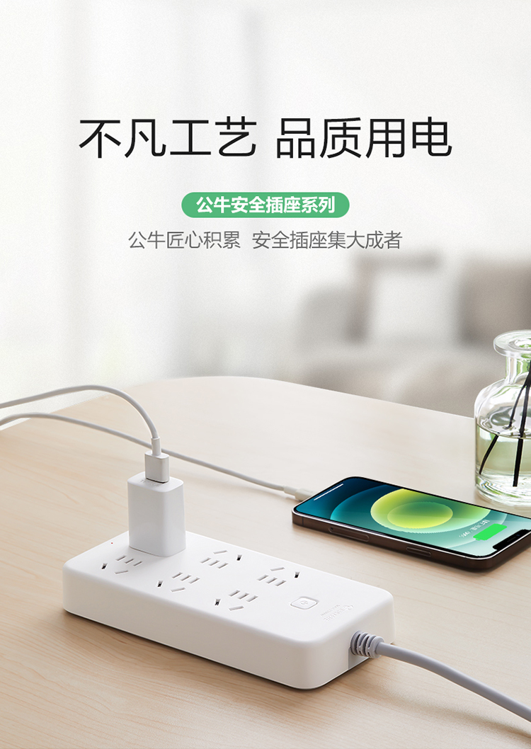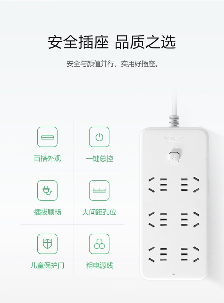 公牛(BULL)五金家電 GN-B2060 新國標插座/插線板/插排/排插/接線板/拖線板 GN-B2060 6位總控全長5米