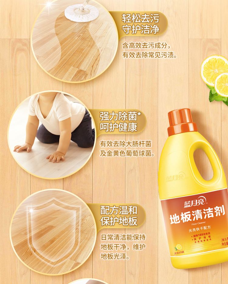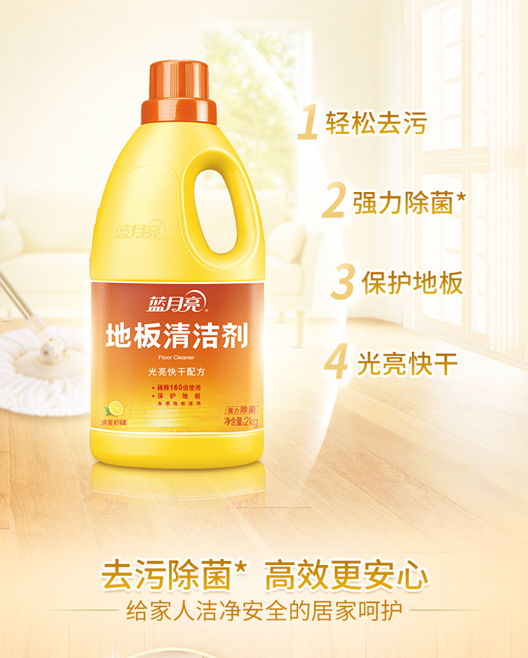 藍(lán)月亮地板清潔劑2kg*4套裝 實(shí)木地板 瓷磚水泥地廁所除菌 地板凈(4桶/件)