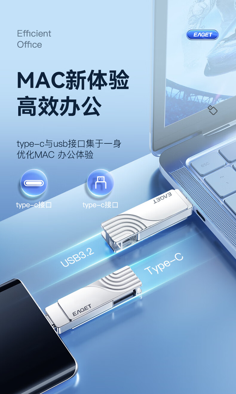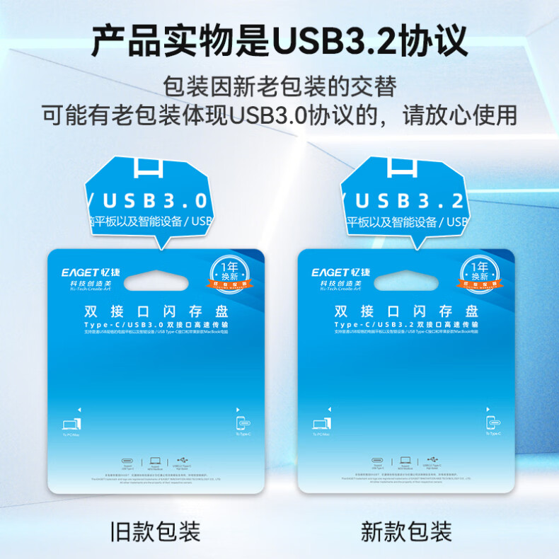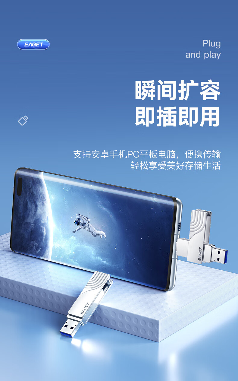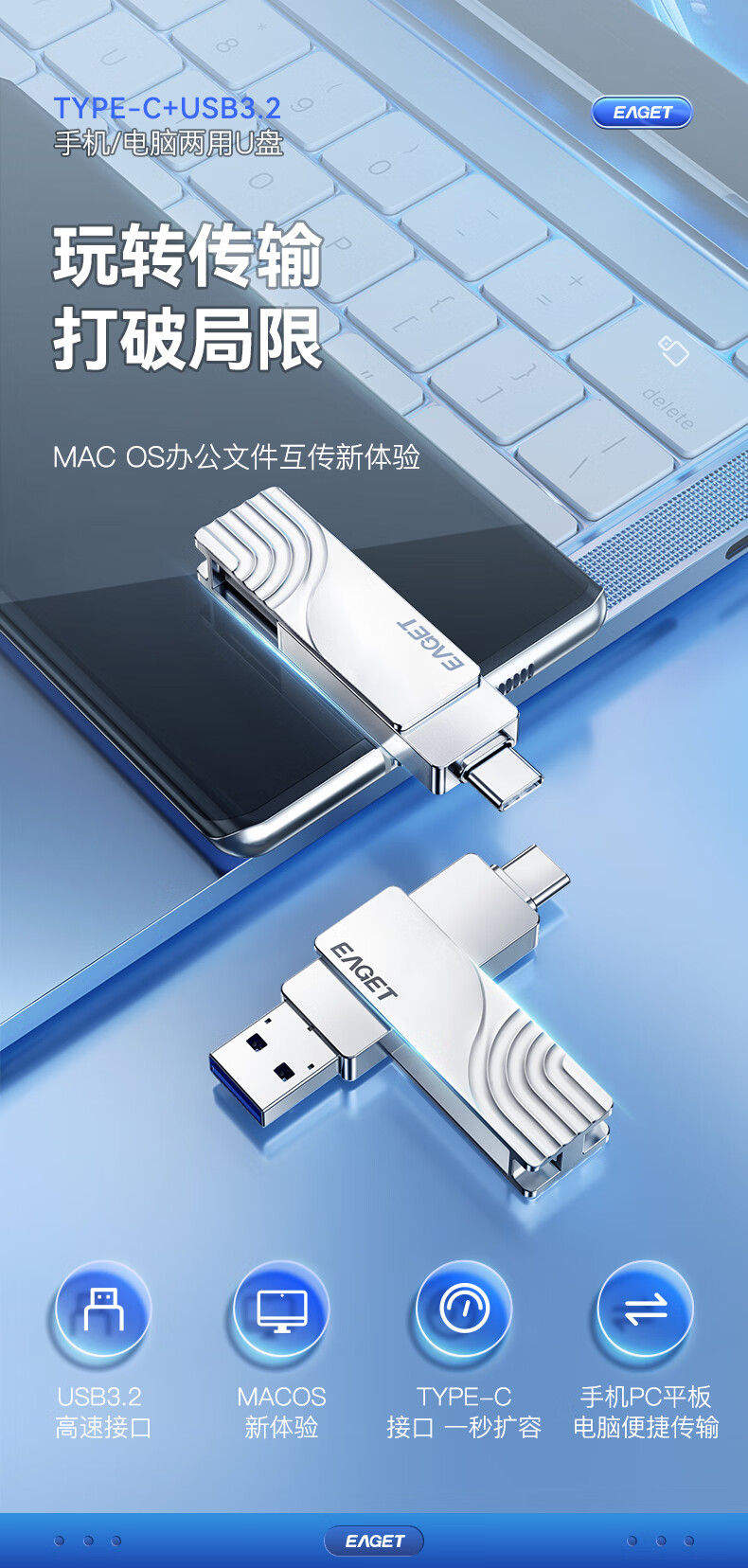 憶捷(EAGET)U盤 128GB Type-C CF30雙接口手機電腦兩用高速大容量 學(xué)習(xí)辦公優(yōu)盤