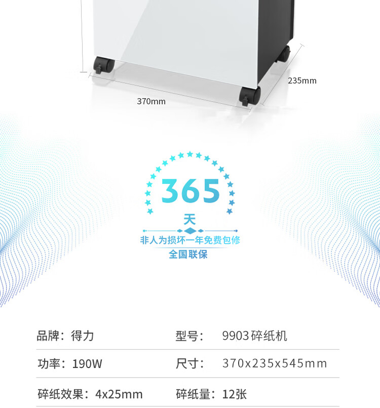 得力(deli) 9903碎紙機 辦公家用碎紙機